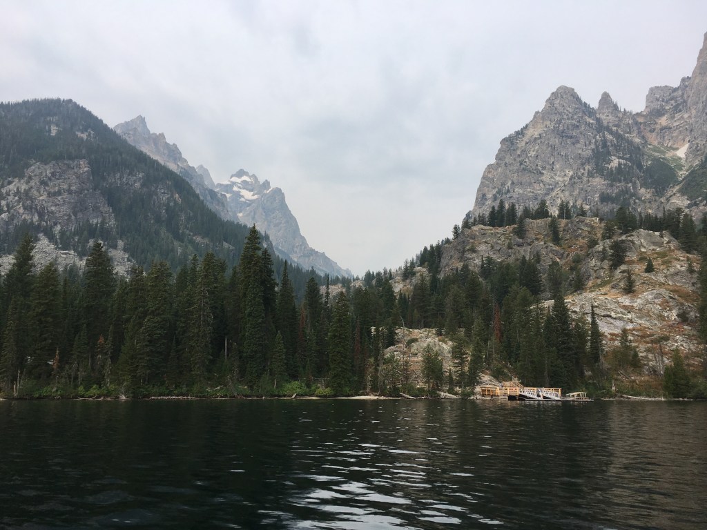 We trokken meteen door naar Jenny Lake en konden als bijna eerste op de parking een goede plaats inpikken! Snel onze kindjes aankleden en een krachtontbijt (spek/eieren) voor onze wandeling. In het tijdperk zonder kinderen hadden we ongetwijfeld het meer rond gewandeld (10mile). Nu namen we de overzetboot ($9 per volwassene – kids gratis – elke 10min – tot 19u s avonds).