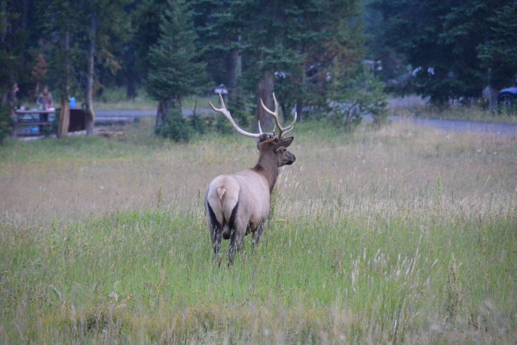 Wow wat een ochtend! Voor herten en elanden stopten we niet echt meer (been there done that). Bizons enkel als ze heel dichtbij waren, maar vandaag zagen we ook een pak andere dieren: bald eagle, golden eagle, 2 spelende rivier otters, zwarte wolven, wit sneeuw geitje…