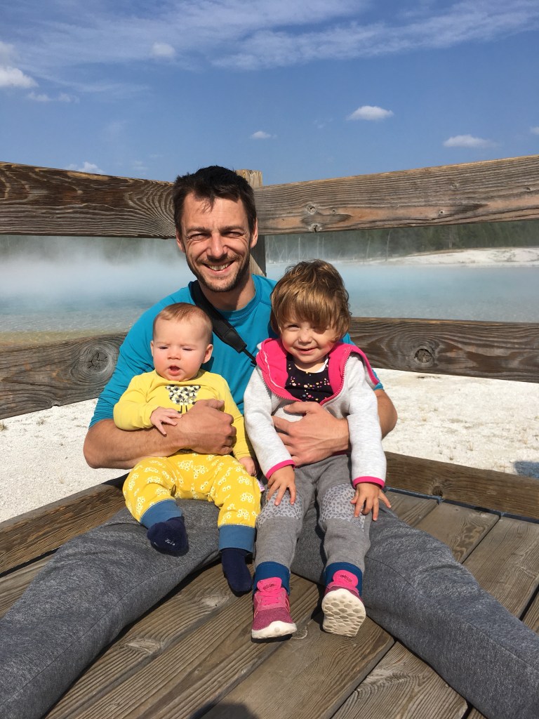 We passeerden een paar kleine poeltjes en geizers die ons nog maar eens met “oooh” en “waaauw” verrasten en kwamen dan aan bij het monster spektakel dat om de 6-7u gebeurde. Toevallig weer, want toen wij op t visitor centre de uren checkten konden ze hem nog niet voorspellen. Bovendien hebben we al een week geen wifi of gsm ontvangst dus de app met voorspelde uren updaten lukte ons niet. Een uur wachten (uitbarsting was voorspeld voor 11.15 maar wisten wij veel dat het +1u of -1u was, wij dachten terug aan good old stipte faithful) bleek te veel voor ons meisjes. Met Ava en Lia brullend in koor barstte dat ding 15min uit. Nuja op een blote tiet meer of minder zien we hier niet en Lia heeft dus eten gekregen tijdens t spektakel terwijl Christoph Ava probeerde koest te krijgen en helaas het filmen van het spektakel van de 3 tegelijkertijd uitbarstende geisers op zn buik kon schrijven… aaaah, het reizen met kindjes, steeds weer anders dan het in je hoofd zat 😝