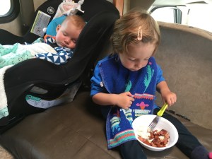 - Ze is ongetwijfeld de allergemakkelijkste van de 2 op deze reis, buiten de vervelende gewoonte om steeds nog een laatste kakpamperke te produceren als ze al ingegespt zit in de autostoel, doet ze niets anders dan lachen, eten en slapen.