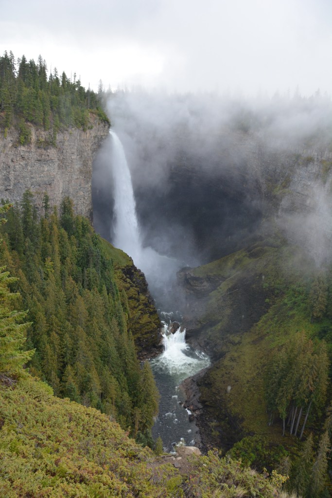 Na de aangebrandde pannenkoeken – ik hoop zo dat die uitslapende Nederlanders kei hard wakker geworden zijn van ons brandalarm kookwekker momentje – opnieuw richting Deer Creek en Rayās farm op zoek naar onze beer… 2u vruchteloos de dochter(s) sussen en entertainen en toen hebben we t opgegeven en zijn we opnieuw richting de watervallen gereden. We kwamen er nog 3 grote tegen op de terugrit uit het park… eindelijk het type waterval dat de moeite waard is om je auto voor uit te komen. Ik geef grof toe dat – na Ijsland- ik sommige gedrochten maar mateloos kan apprecieren als ik terugmijmer naar die prachtige watervallen daar! Alles noemt tegenwoordig waterval… maar nu was t the real stuff… grote canyons, uitgesleten rotswanden, nevel en naar beneden donderend water! Nice om zo Wells Grey Provincial park af te sluiten.
