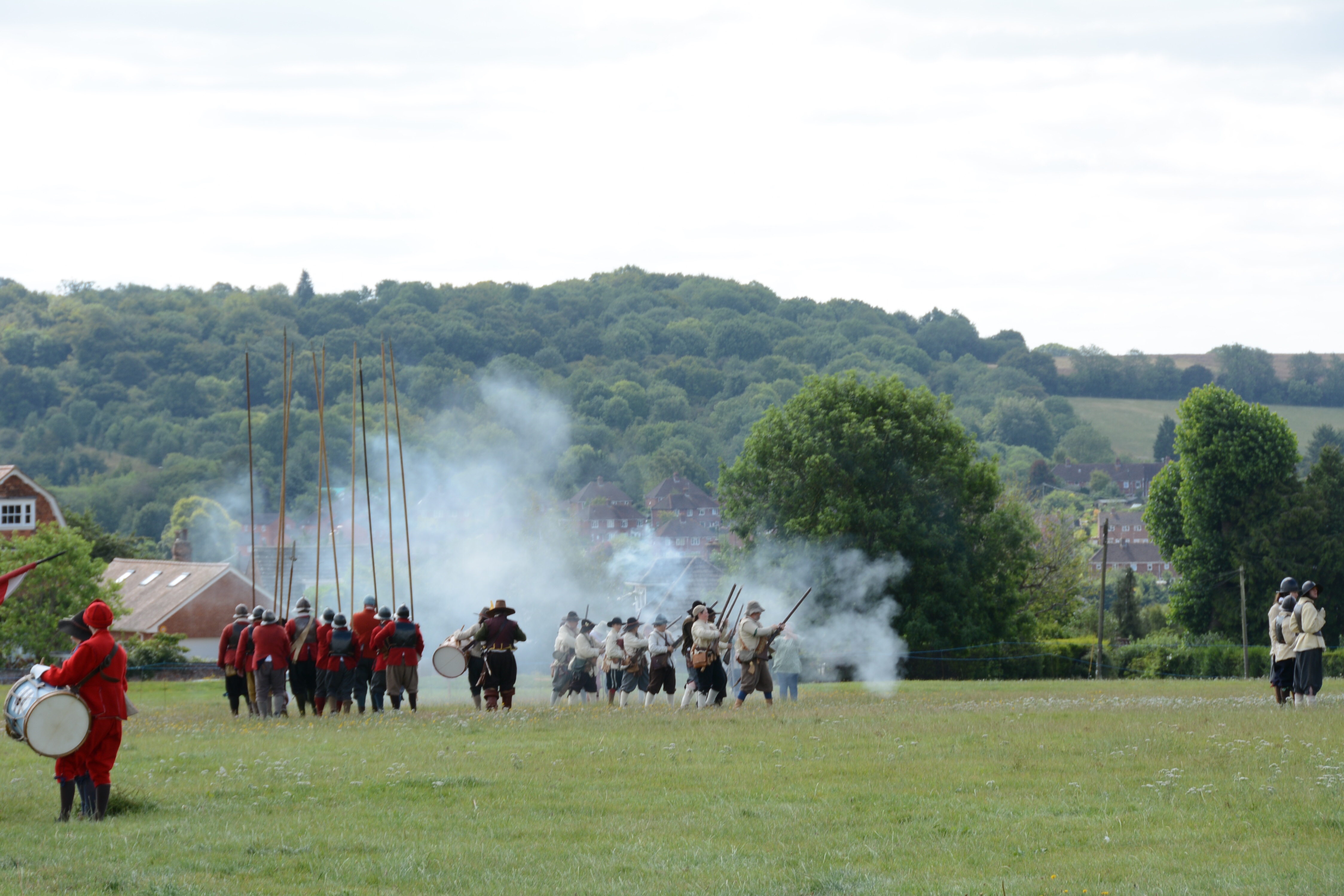 We maakten een eerste korte stop in Marlborough. Toen we het stadje links rijdend probeerden uit te geraken, liep het daar vol verklede mensen. Dat wekte natuurlijk onze interesse. Blijkbaar dit weekend het Marlborough Under Attack event waarin ze een dag uit de 10j durende civil war naspelen… echt zoals in de films, met kanonnen en geweren en akelig goed verklede mensen die zich echt in 1642 wanen…. beetje bizar toch ook wel. Dan heb ik toch iets liever dat Christoph een muziekfestival mee organiseert dan oorlogske speelt godganse dagen…