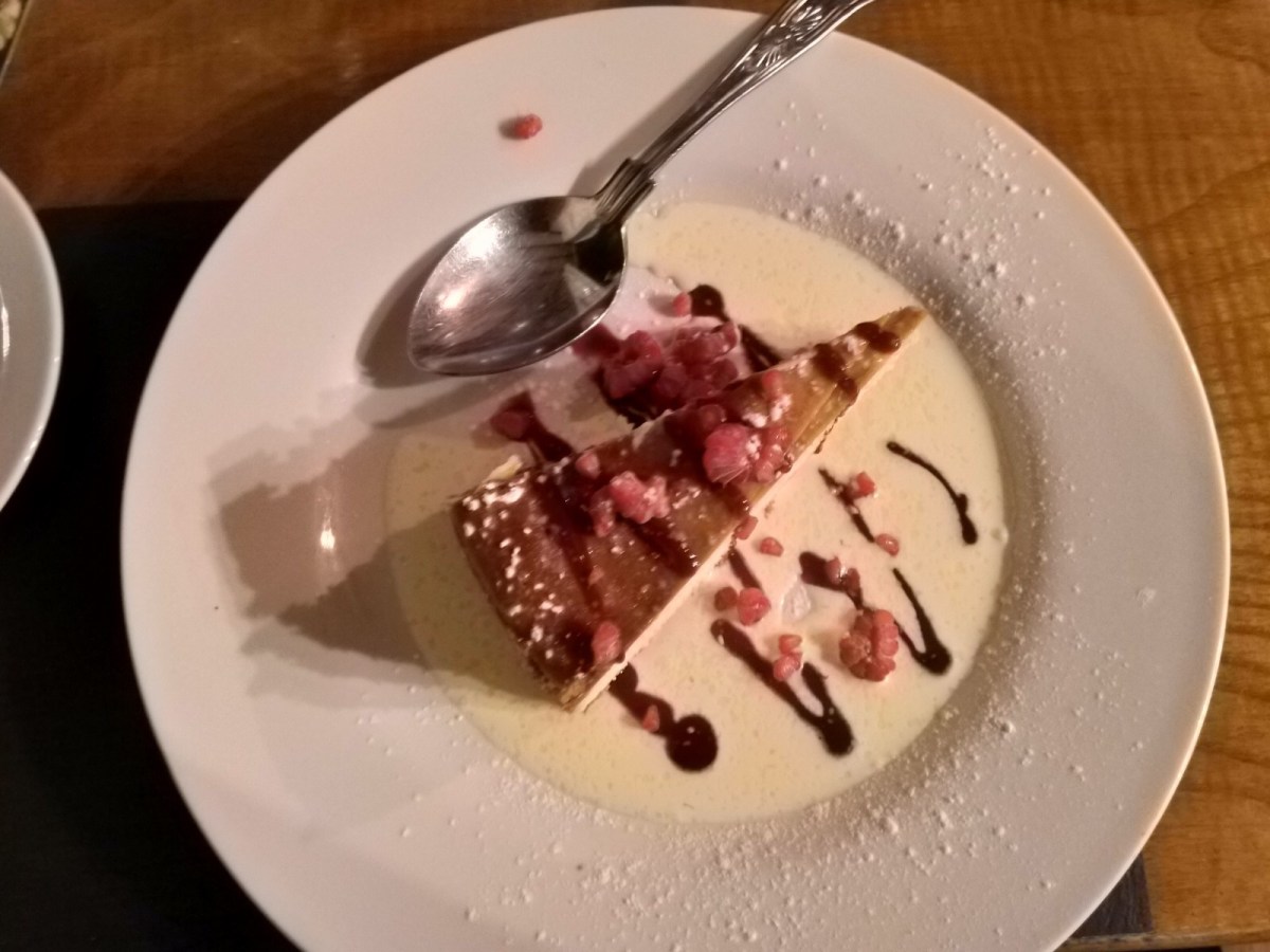 En dan de rest van onze culinaire avond… –opgepast zie dat ge gegeten hebt voor je verder leest, want wij aten hier zo mogelijk nog lekkerder dan lekker — Vergeet wat we zeiden gisteren, dit was het food walhalla! Al stoemelings wandelden we ergens binnen en belandden we blijkbaar in t restaurant dat vorig jaar verkozen werd tot beste authentieke Welsh eten. En echt alles was top. Vriendelijke mensen, geen rare blikken als onze kids effe wat luider riepen of giechelden van pure opwinding. Waterflesjes werden zonder morren aangevuld, we kregen gratis tomatenbrood voor Lia, toffee cakejes bij betalen voor de kids bij, kortom… super!