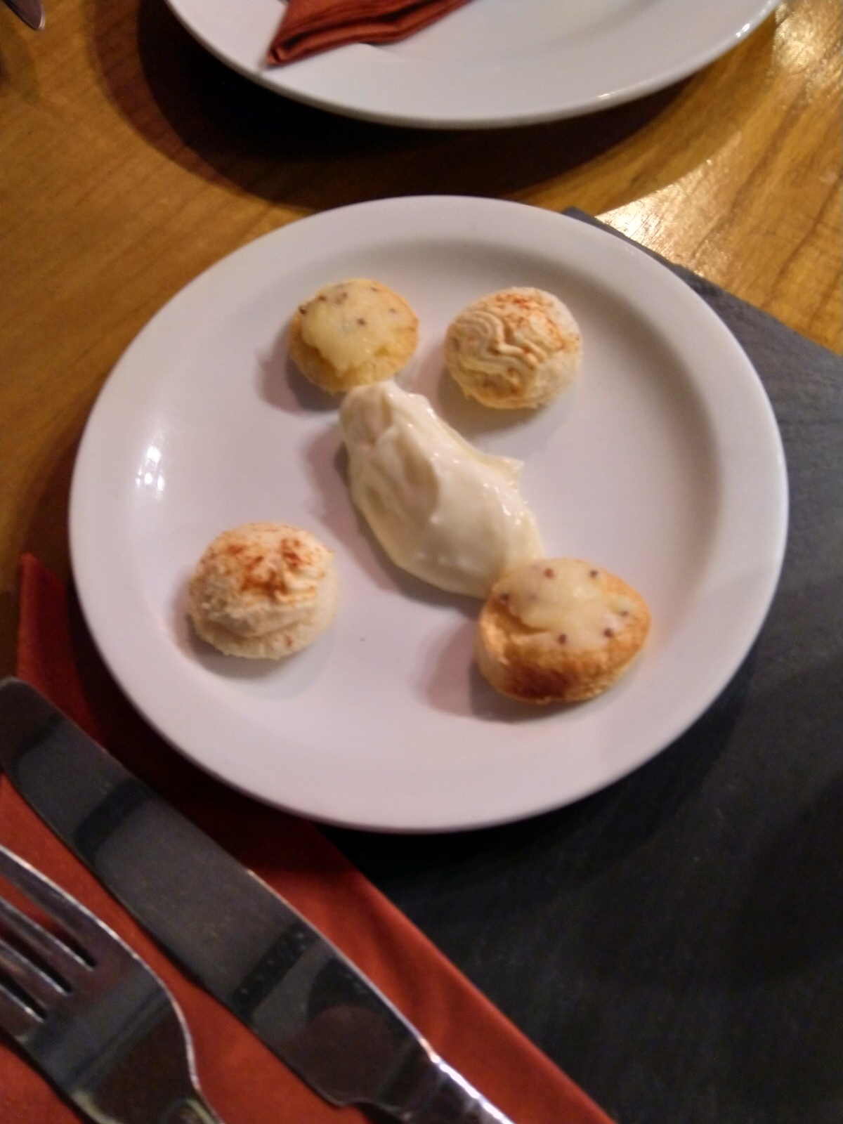Heerlijke amusekes (Welsh rarebit (wat dat dan ook mag zijn & zalmmousse)