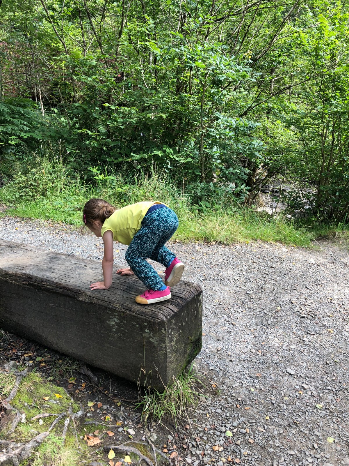 Ava vond het springen van de boomstam naast de bezienswaardigheid minstens even interessant! Zolang ze maar overal af kan springen is ze content… ohja en wildplassen! Dat moest natuurlijk ook gebeuren aan de waterval 😎