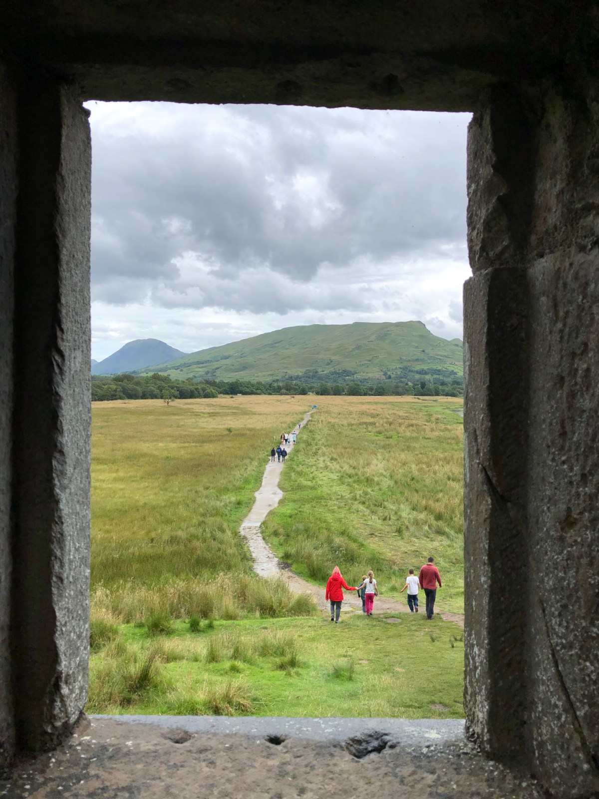Het eerste viewpoint met onuitspreekbare naam stelde niet teleur. We lieten de kids in de auto en holden om de beurt over en weer. Aan de auto stond net een doedelzakspeler compleet in outfit! En toen er daar ineens 2 boten aanmeerden vol toeristen die een toertje op het loch gevaren hadden, stond ik net Lia te verschonen op t muurtje, dus ik ben zeker dat mijn geworstel met natte doekjes en een kind dat niet bleef stil liggen met een k*k* poep ongewild op menig doedelzak-filmpje terechtkwam 🤷🏼♀️