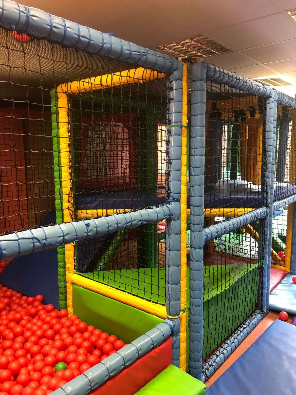 Op zoek naar een lunchadresjes belandden we uiteindelijk ten einde raad in Kinlochleven. Iedereen had immers hetzelfde idee om binnen te schuilen. Het enige wat we vonden was t cafetje van de klimzaal “Ice Factor” waar je kan muurklimmen, touwenparcours doen, indoor gletsjerklimmen en boulderen. Gelukkig voor ons was er plaats om te zitten; konden we 2 kids na een ongelukje omkleden en was er een burger die er mee doorkon met wat verbeelding… De gratis binnenspeeltuin werd door Ava goedgekeurd! We brachten er een paar uur door en reden dan toch maar door op zoek naar t goede weer.