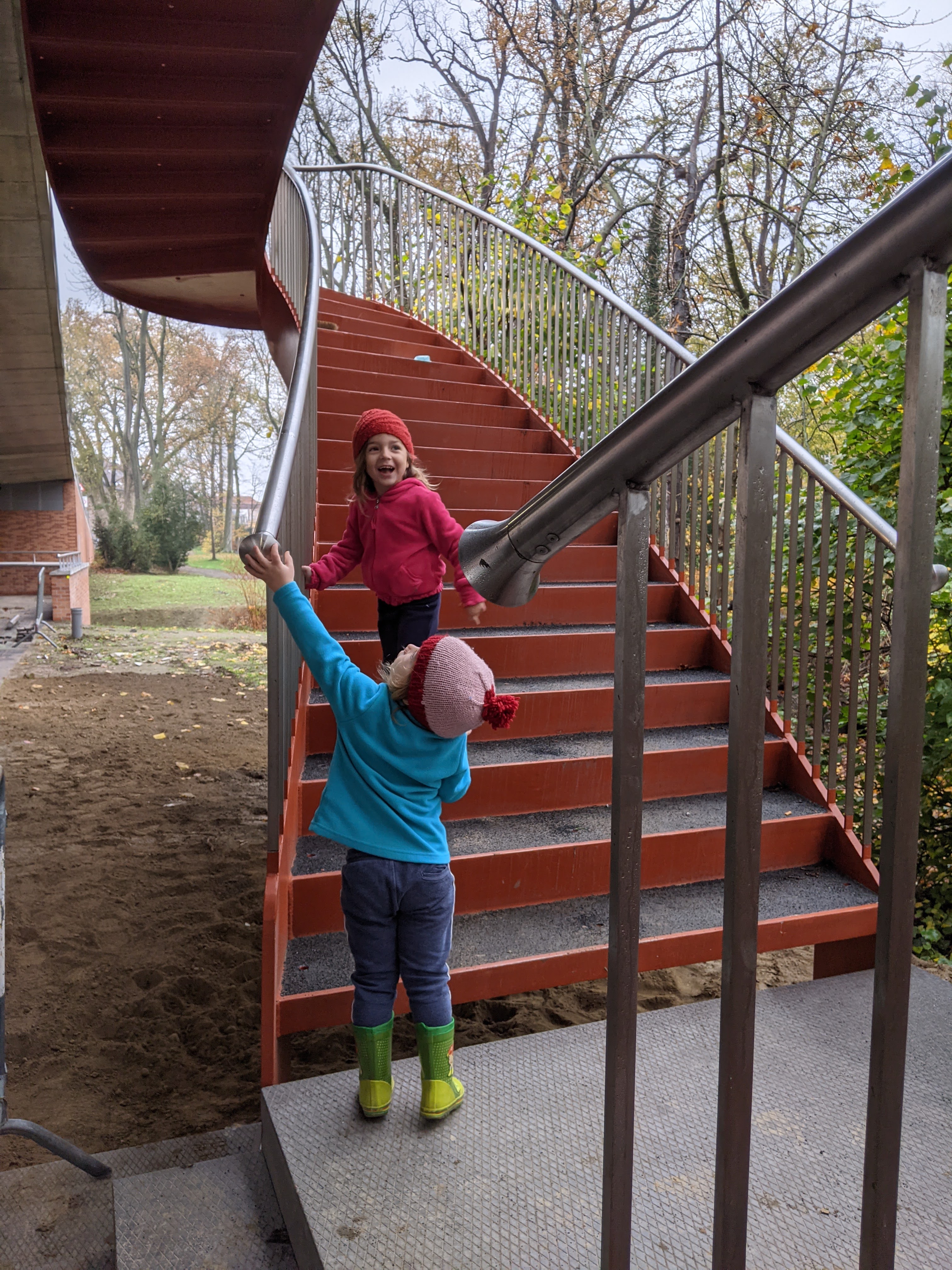 Een papa-ingenieurs- momentje wanneer (i) je kinderen vol bewondering de constructie aanschouwen (ii) je beseft dat de werken nog niet klaar zijn en die bengels er eigenlijk nog niet op mogen maar (iii) je toch toestaat dat ze voorbij de nadar kruipen als ze “ik wil naar boven” smeken met puppy-eyes om vervolgens een dansje te doen op de treden, van wat echt wel een mooie publieke trap genoemd mag worden. (iv) Ze laten schuiven in hun pakje dat 100% vuil mag worden … (moeder vult even aan… dat heeft niets met ingenieurs momentje te maken, vooral met vader die de was niet doet!)