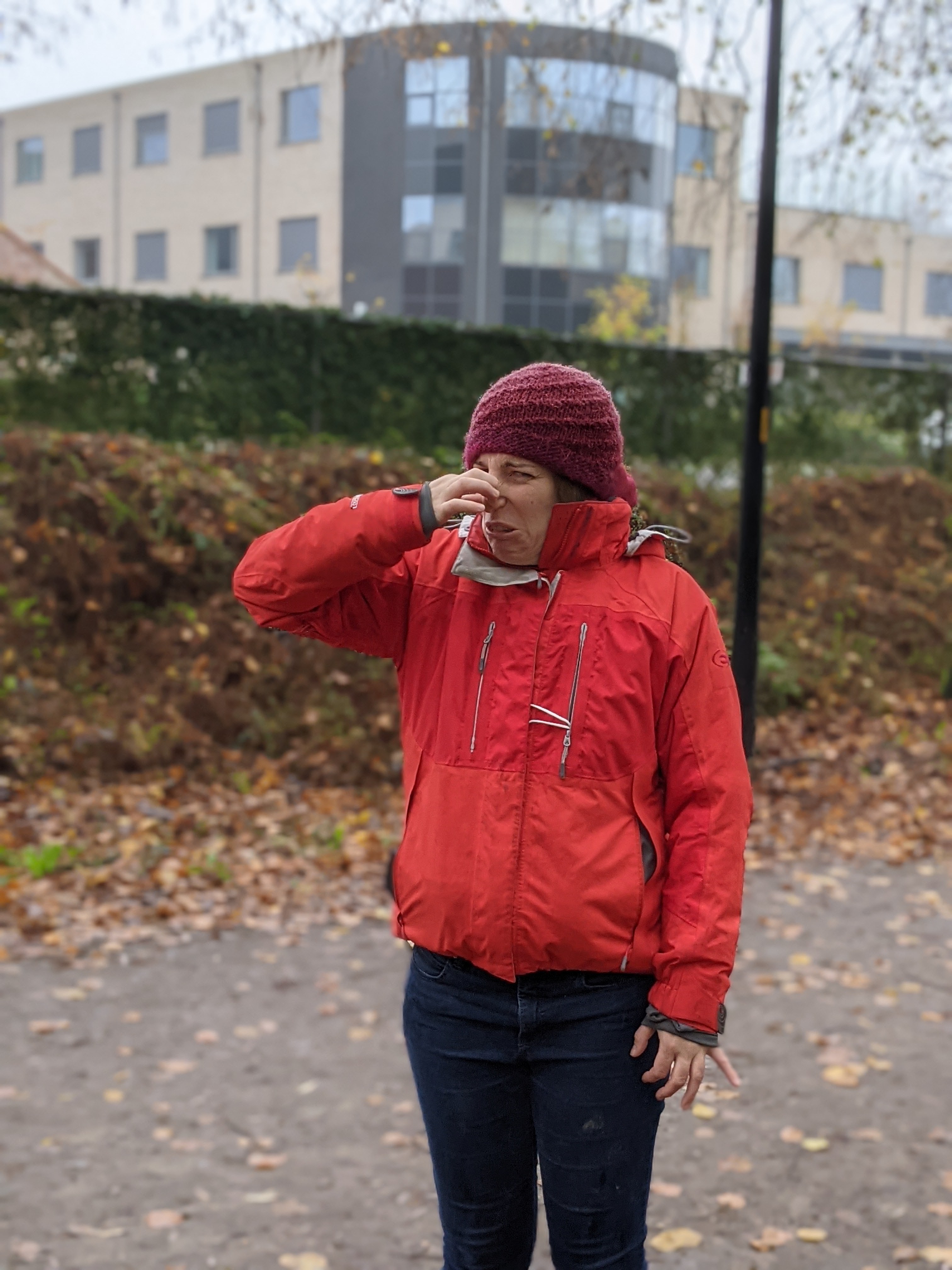 Mandelhoek, hier zijn we. Eindelijk gestart met wandelen… kilometers vreten! Maar eerst… Lia ingespen want die wil niet bewegen, letterlijk in zitstaking en zelfs niet om te kopen met koekjes. Mama hier blijven… 17 kilo op de rug later… knibbbel knabbel knuisje… wie knabbelt er aan ons… Boem! De volkstuintjes van Ingelmunster op nog geen 20 meter voorbij de start van het parcours.