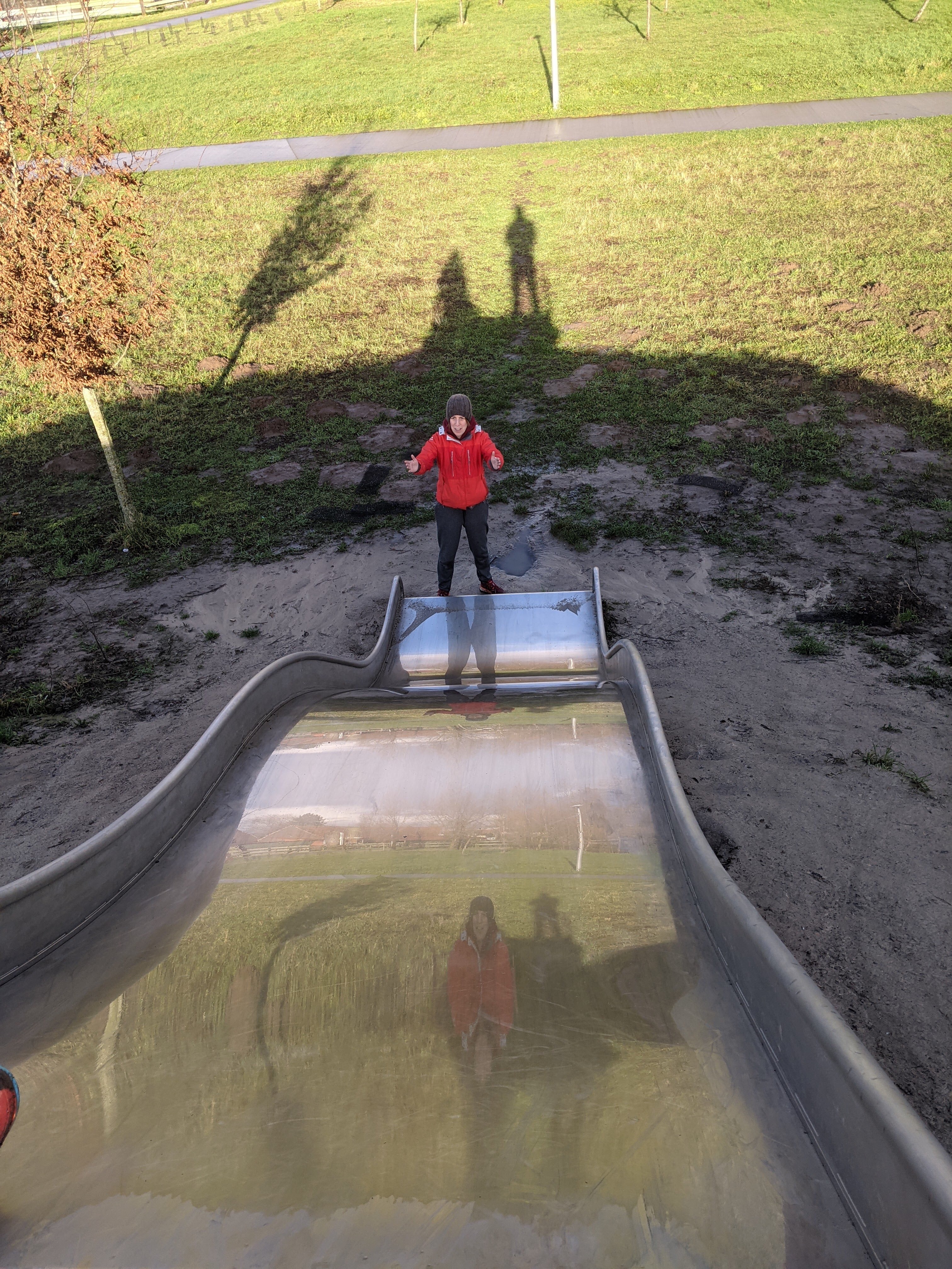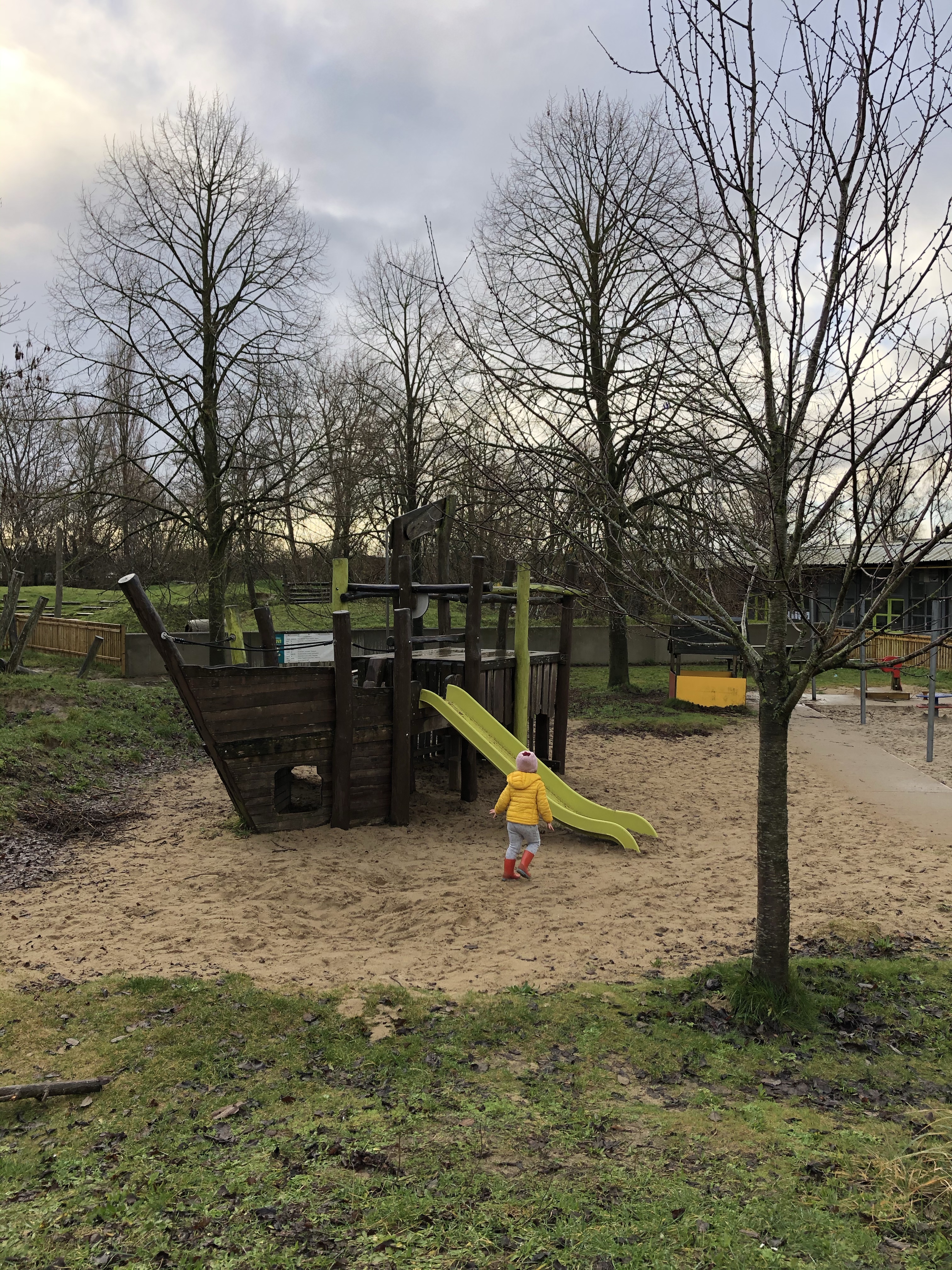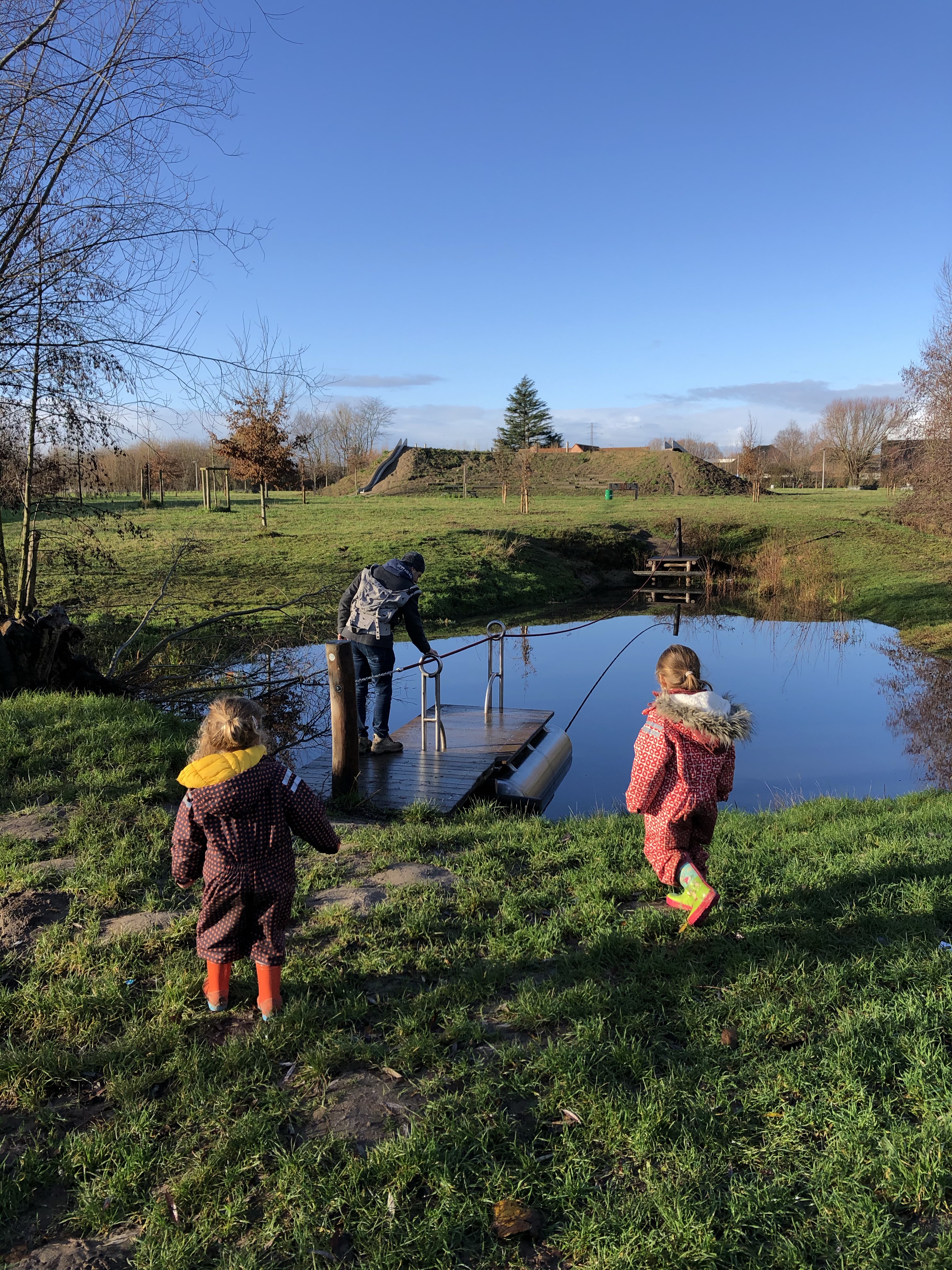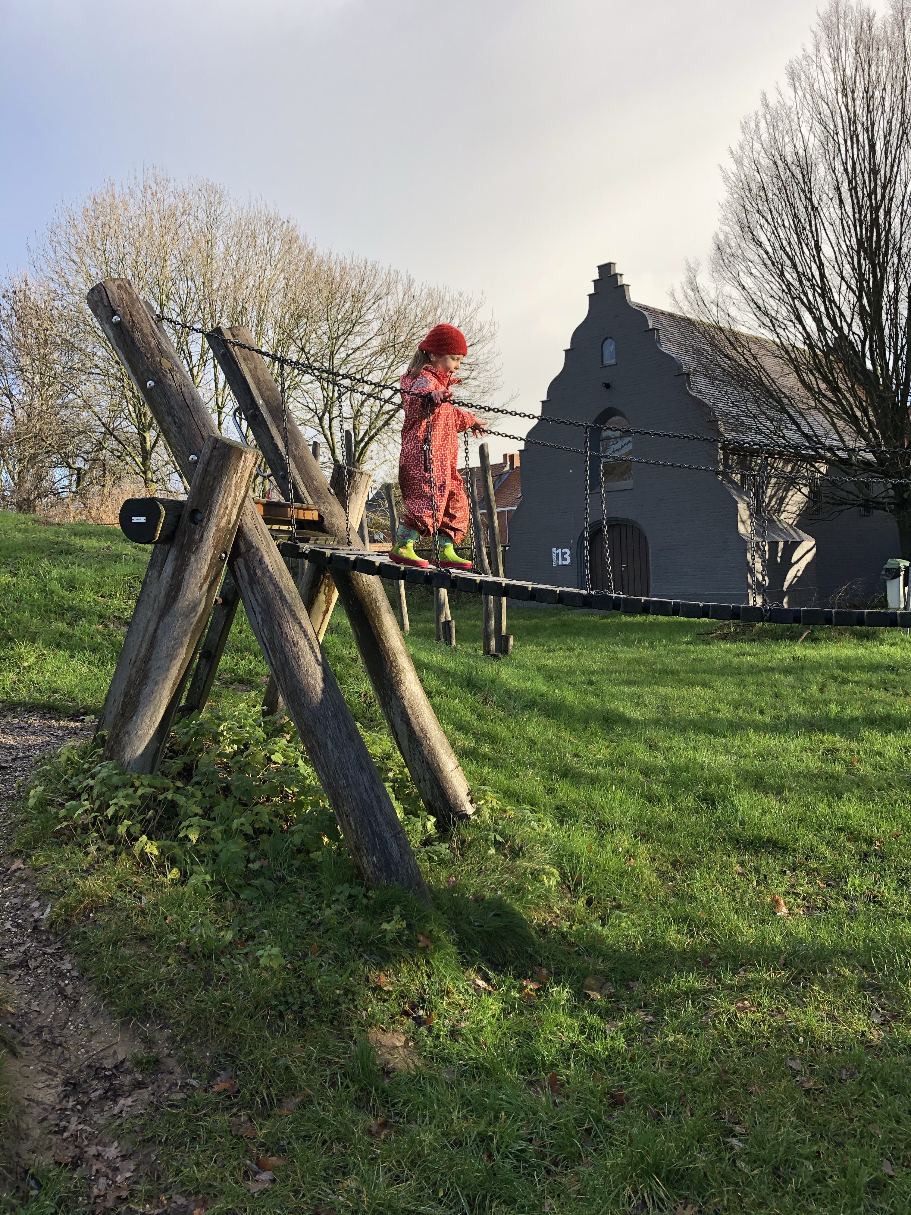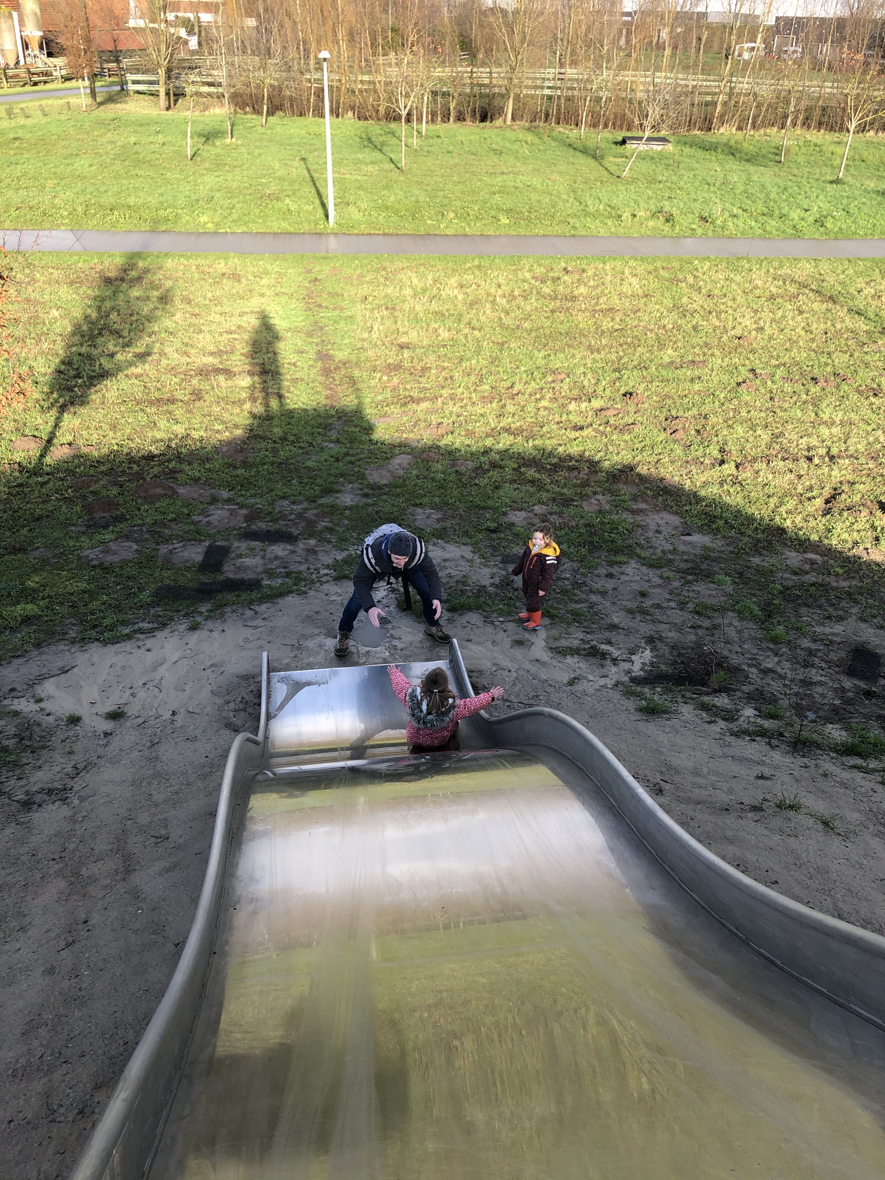 Snel gingen we op ontdekking en kwamen we aan de speeltuin zowaar een ander gezin uit Beveren-Leie tegen. Dat waren dan ook zo goed als de enige mensen met wie we de 8 hectares deelden tijdens kerstochtend.