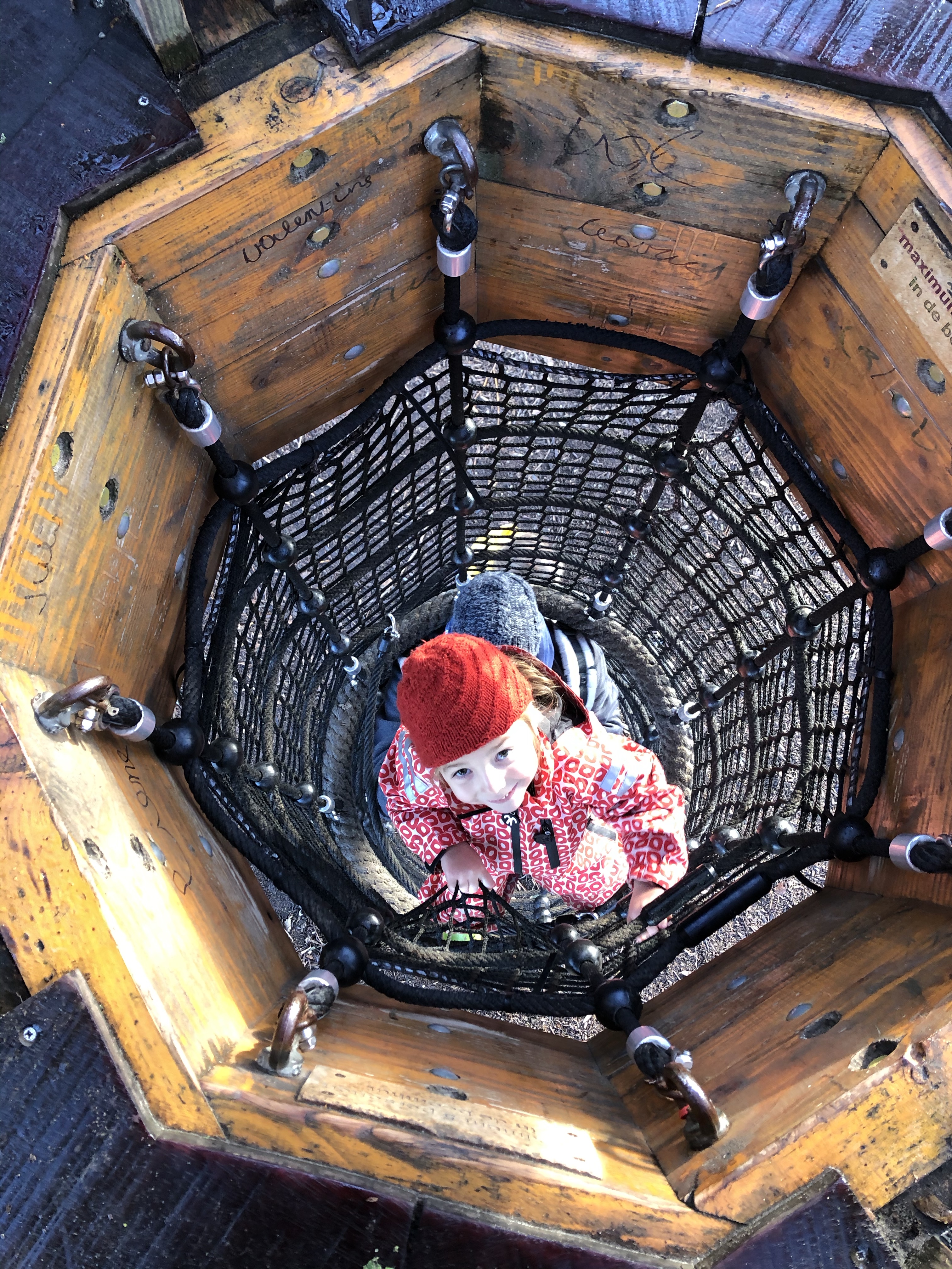 De meisjes geloofden niet helemaal dat ze weer veilig naar beneden geraakten en t wiebelde best wel een beetje maar we verlegden gezinsgrenzen! Al geef ik toe dat Lia naar beneden krijgen eerder een doorgeefoefening was… de pacha liet zich patattenzaksgewijs dienen…