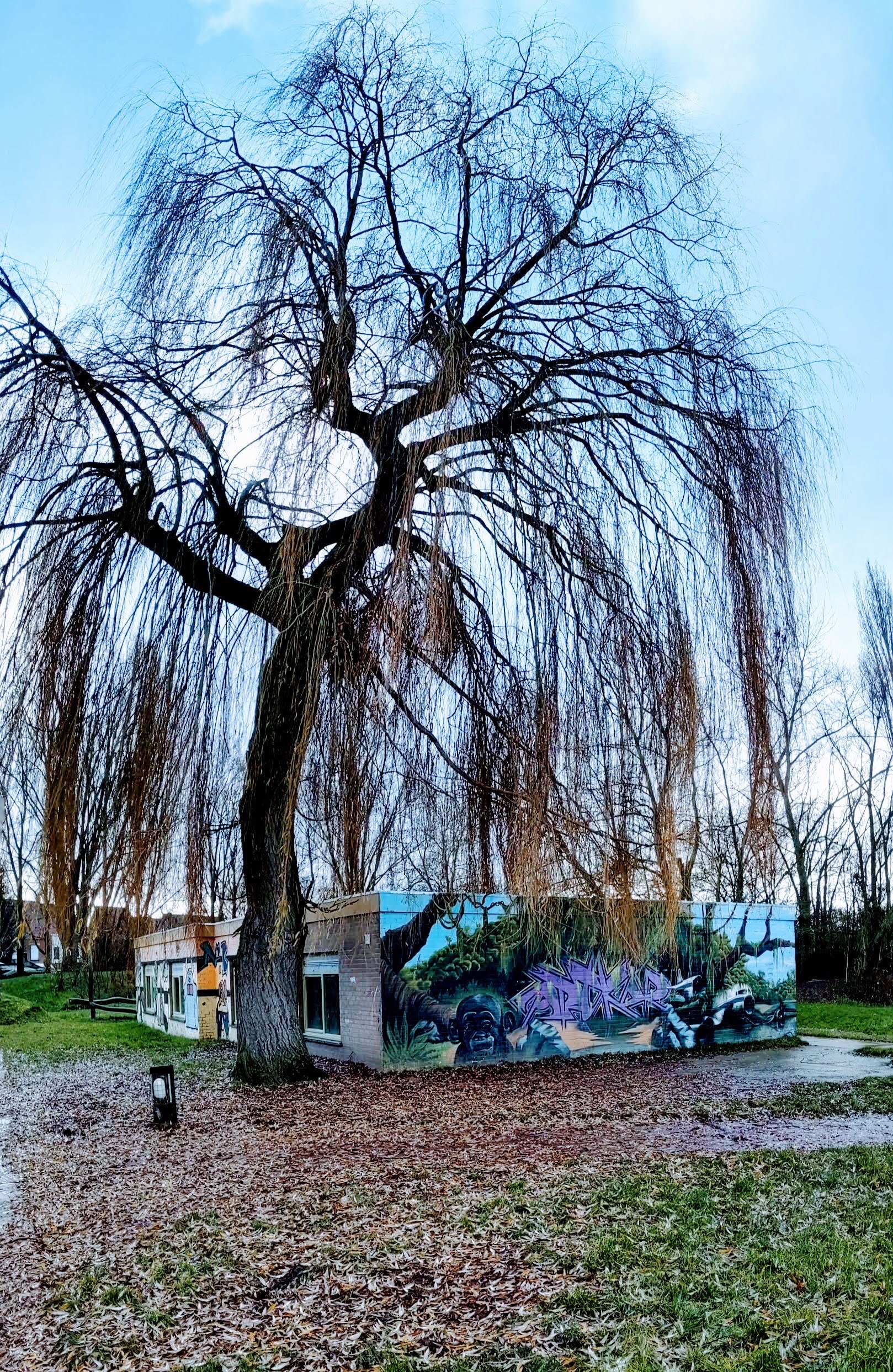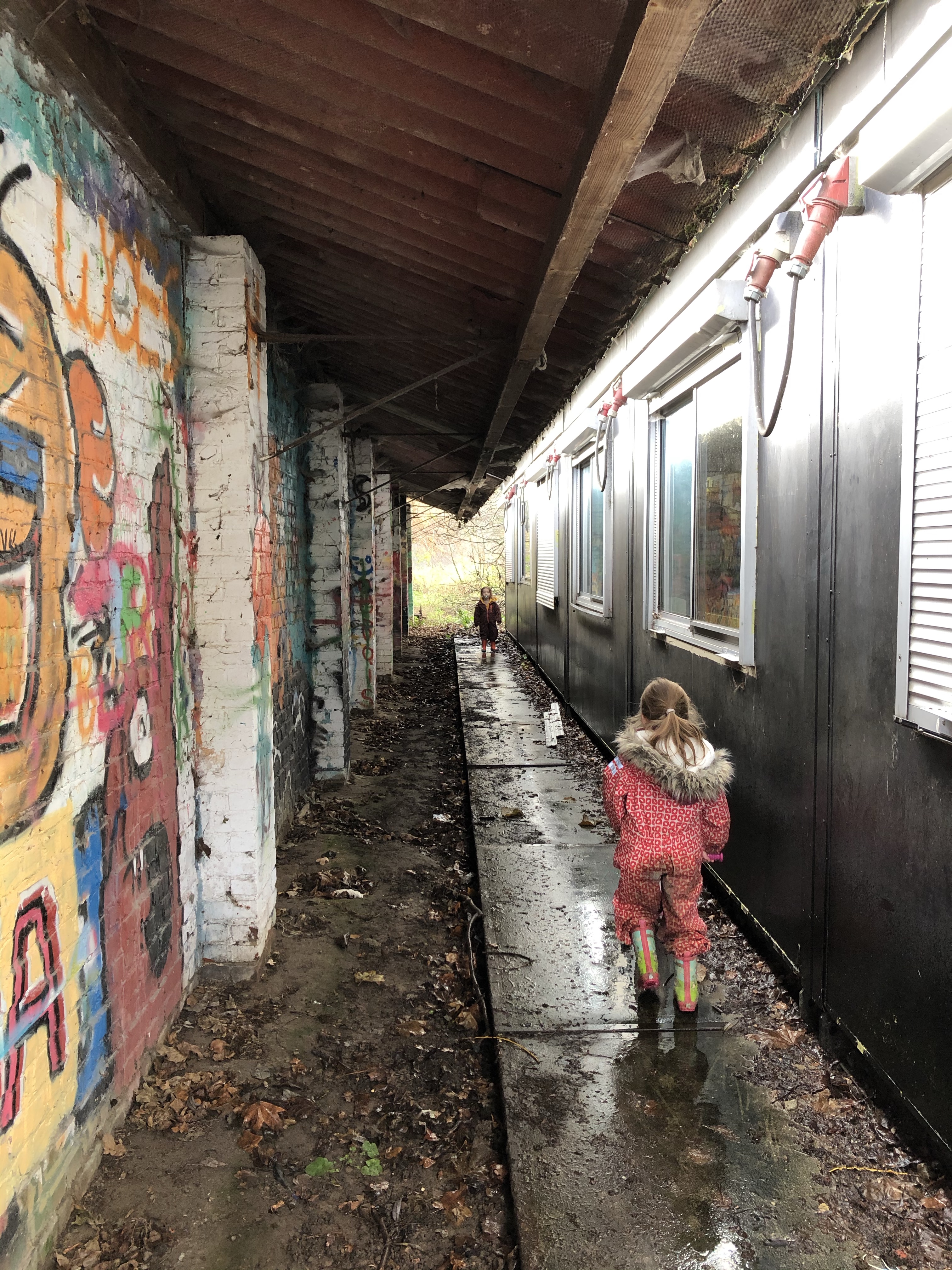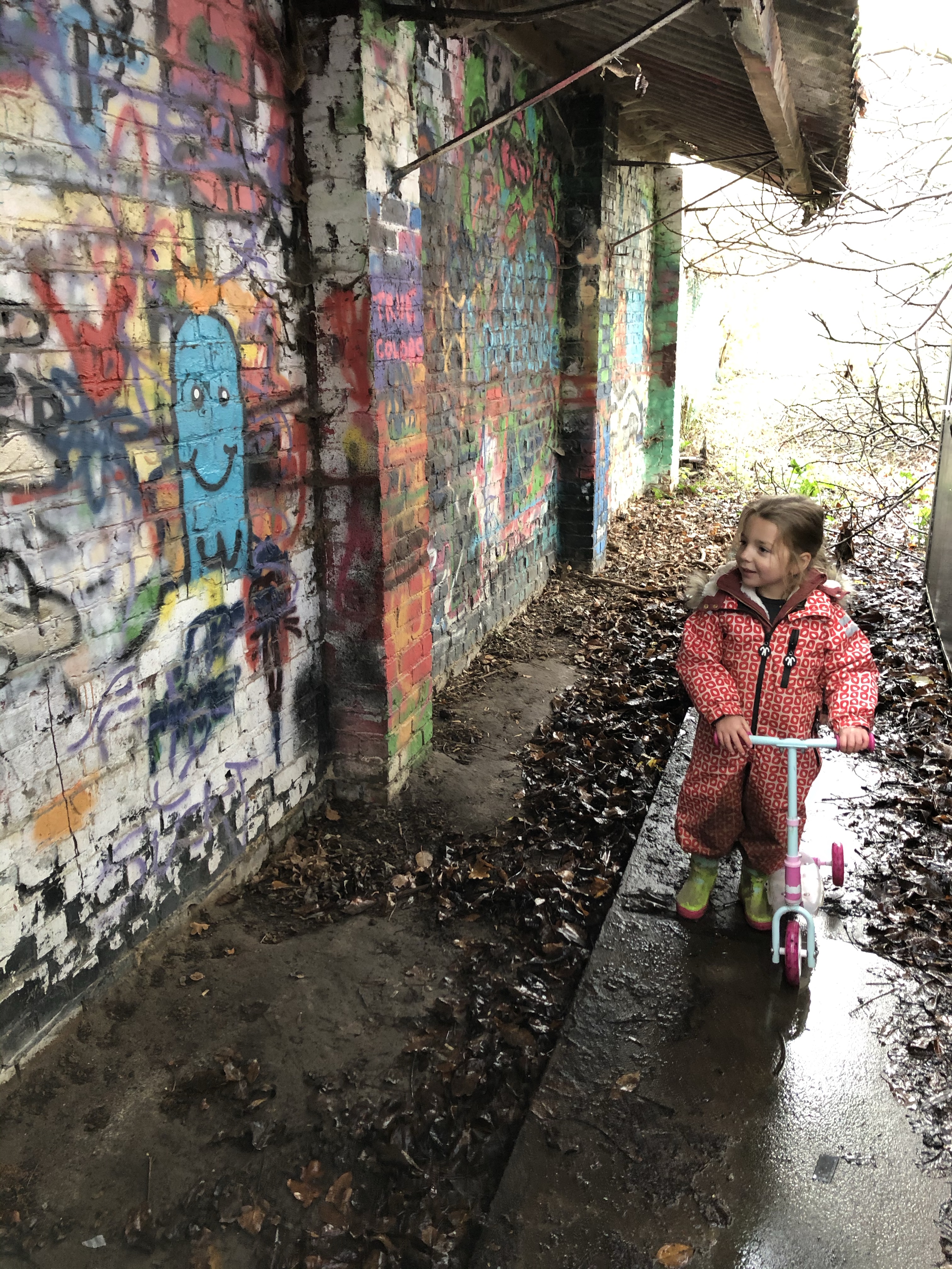 Nat, modderig, moe en voldaan keerden we bijna 2u spelen later huiswaarts met enkel een korte fotostop aan de grafitti aan de ingang.
