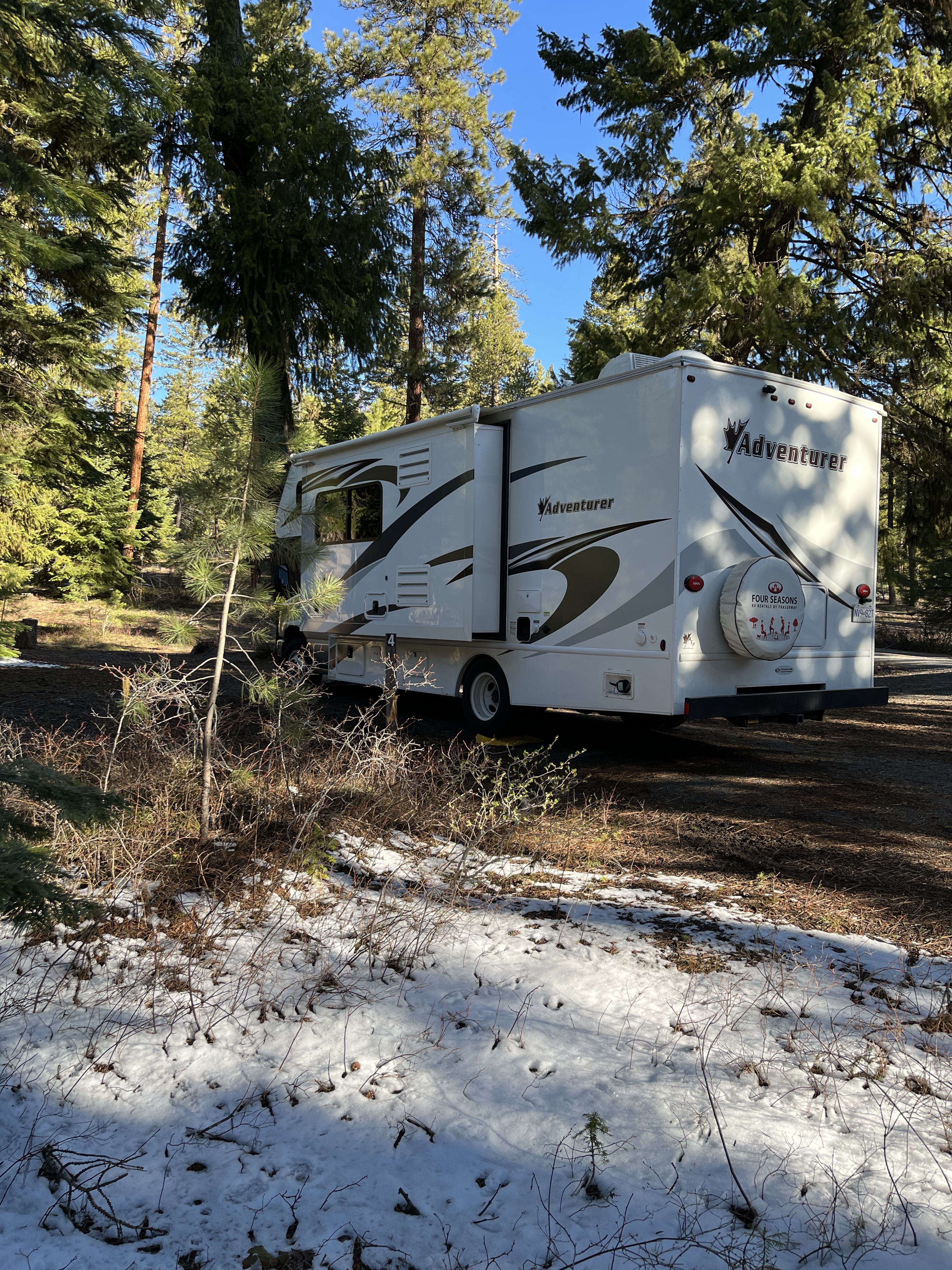 Overnachting: Wallowa Whitman National Forest Campground Oregon (10$ als er gratuity enveloppes zijn… gratis dus 🤘🏻Tenzij je de eekhoorntjes rond de brievenbus een 10$ briefje voor hun warme winternestje gunt) – je vindt op Highway26 de ene na de andere camping met picknickbanken en vuurputten. Prachtig in het dennenbos met een laagje sneeuw… we stond gans alleen, ideaal als je t brandalarm even wilt testen bij t bakken van ochtend pannenkoekjes