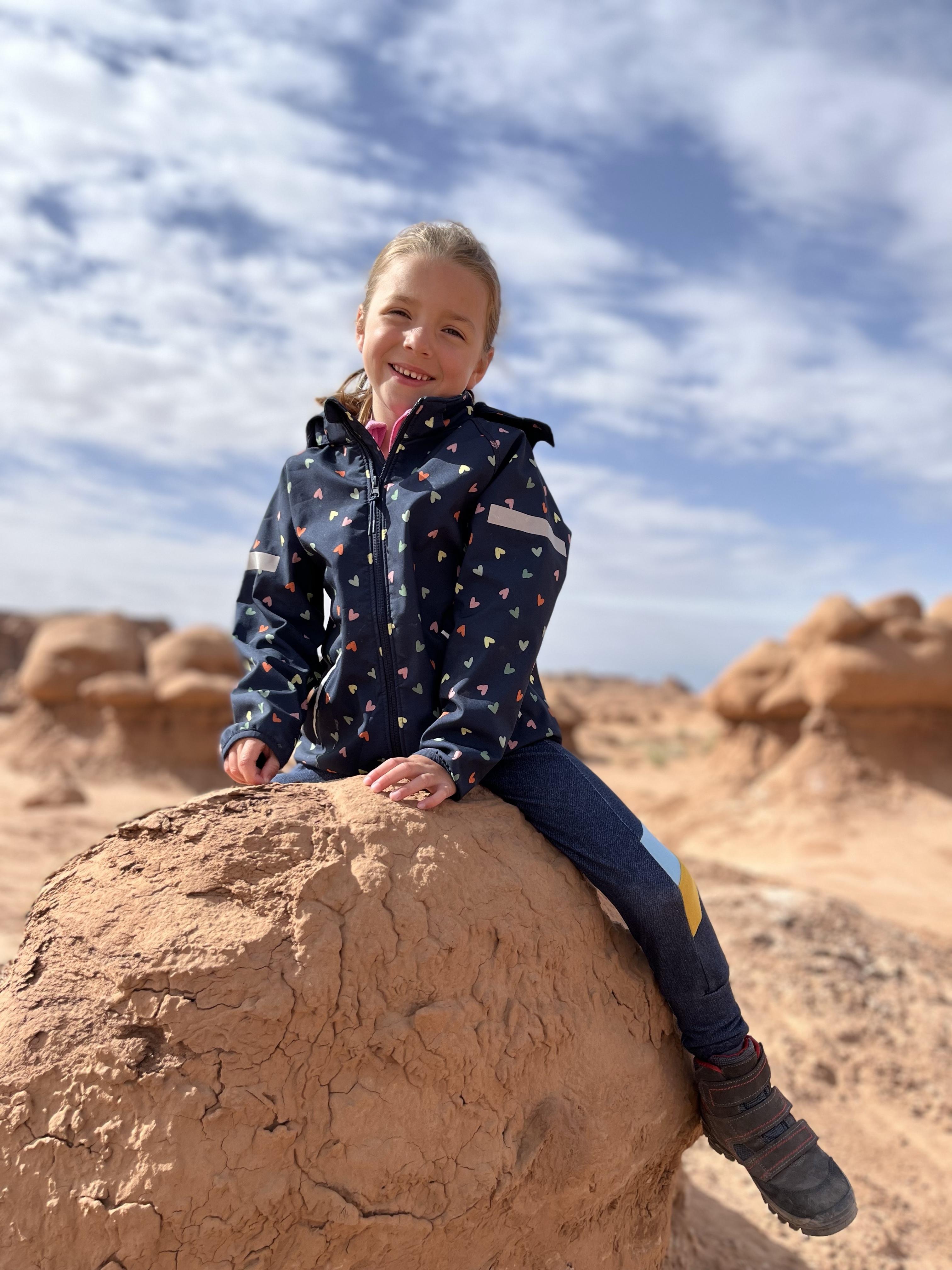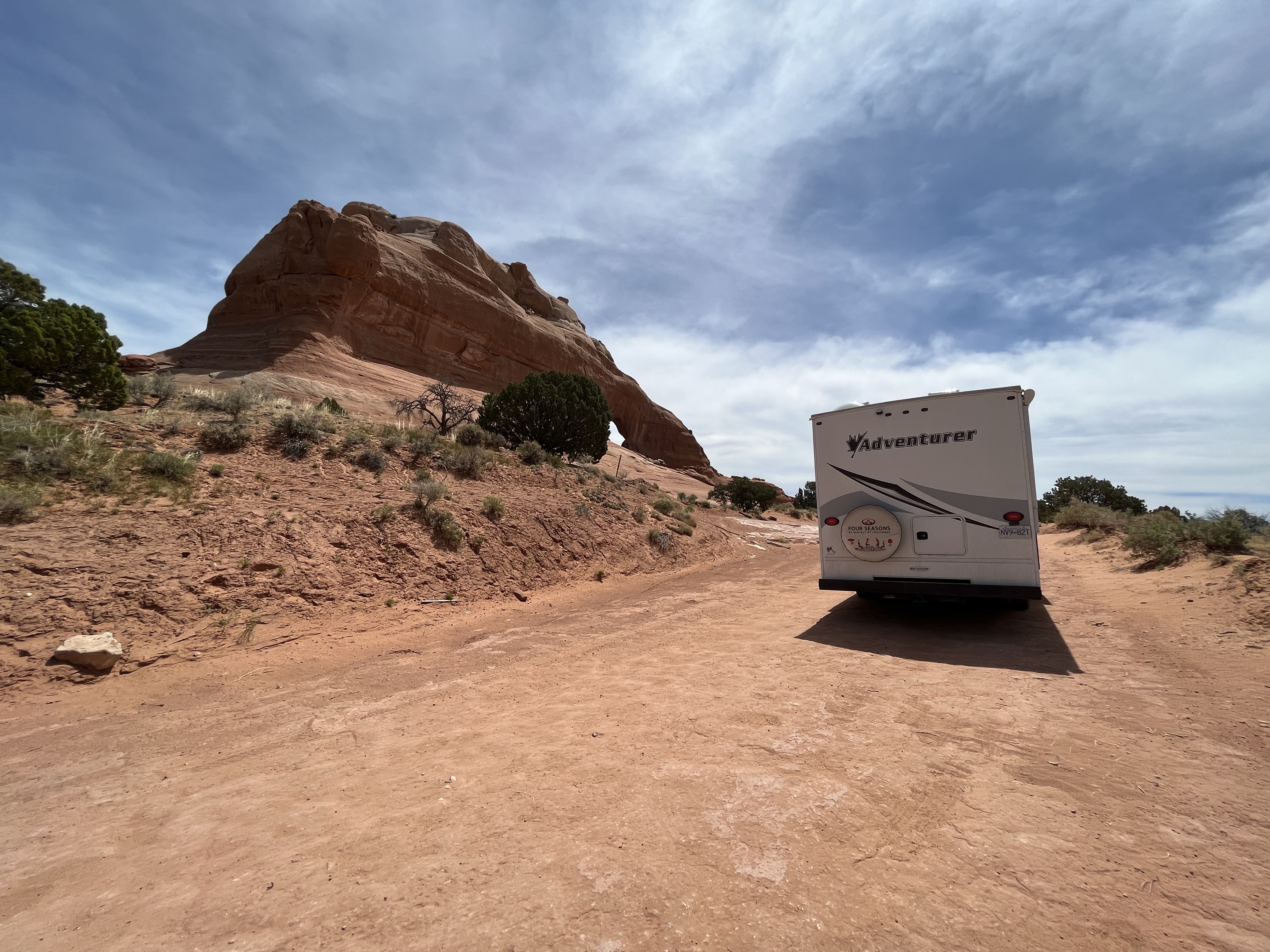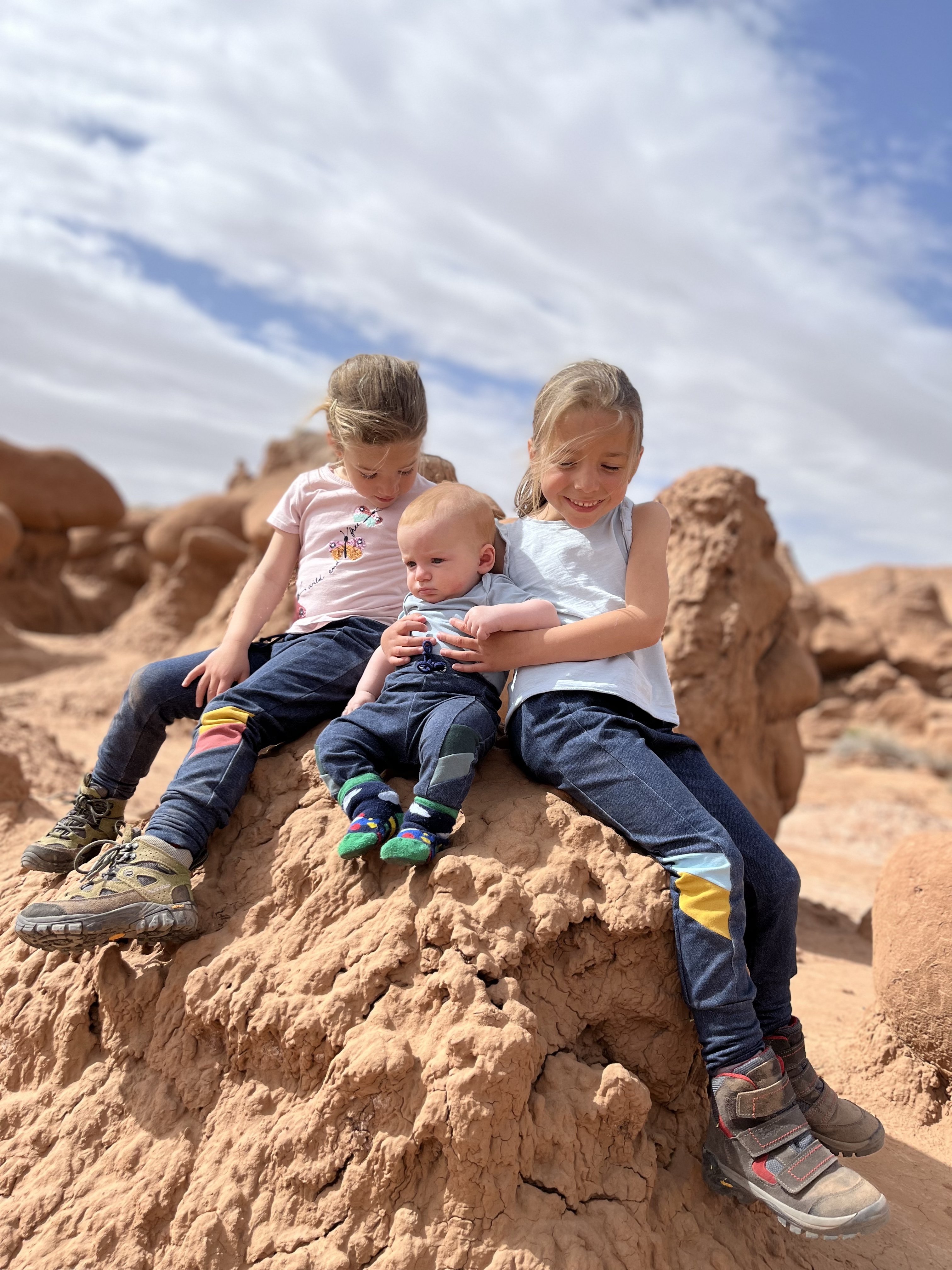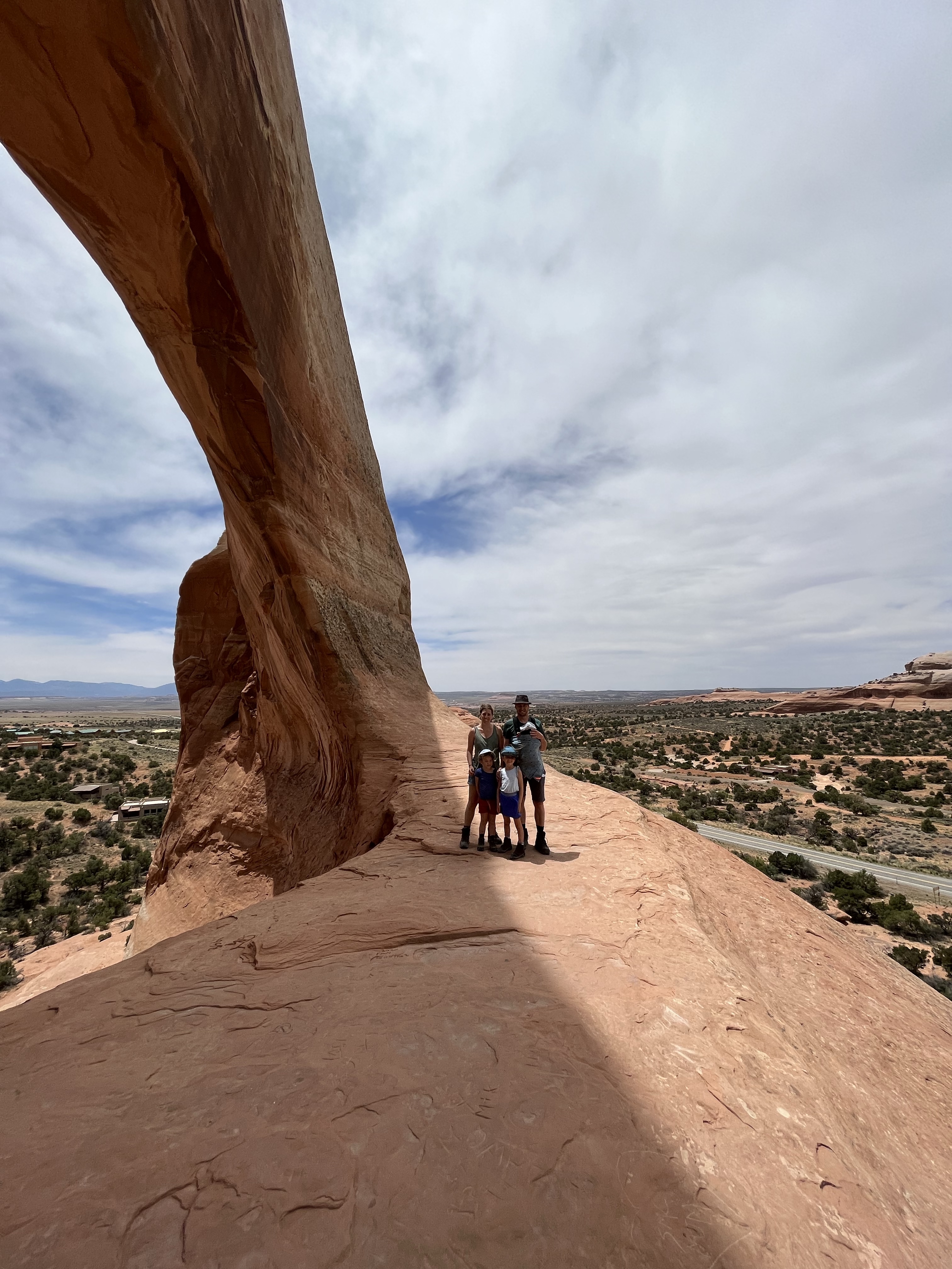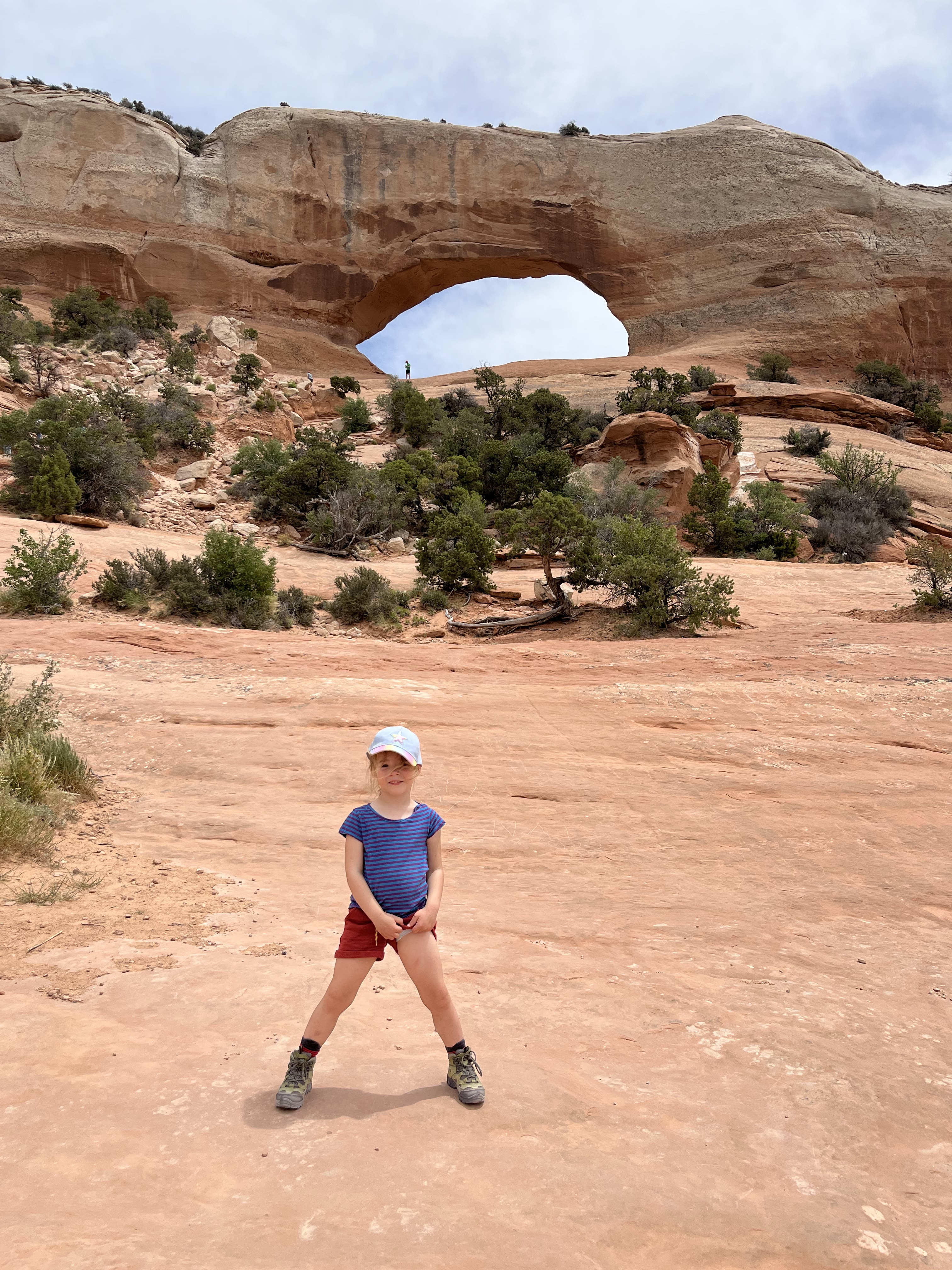 Volgende stop Wilson Arch. Die wandelden we wél naar boven. Even obligate fotoshoot aan de top en dan richting mobilhome voor onze welverdiende lunch. Ergens halfweg schaafde Lia haar bil… dat wilde ze nog even graag op de foto laten zien 🙈