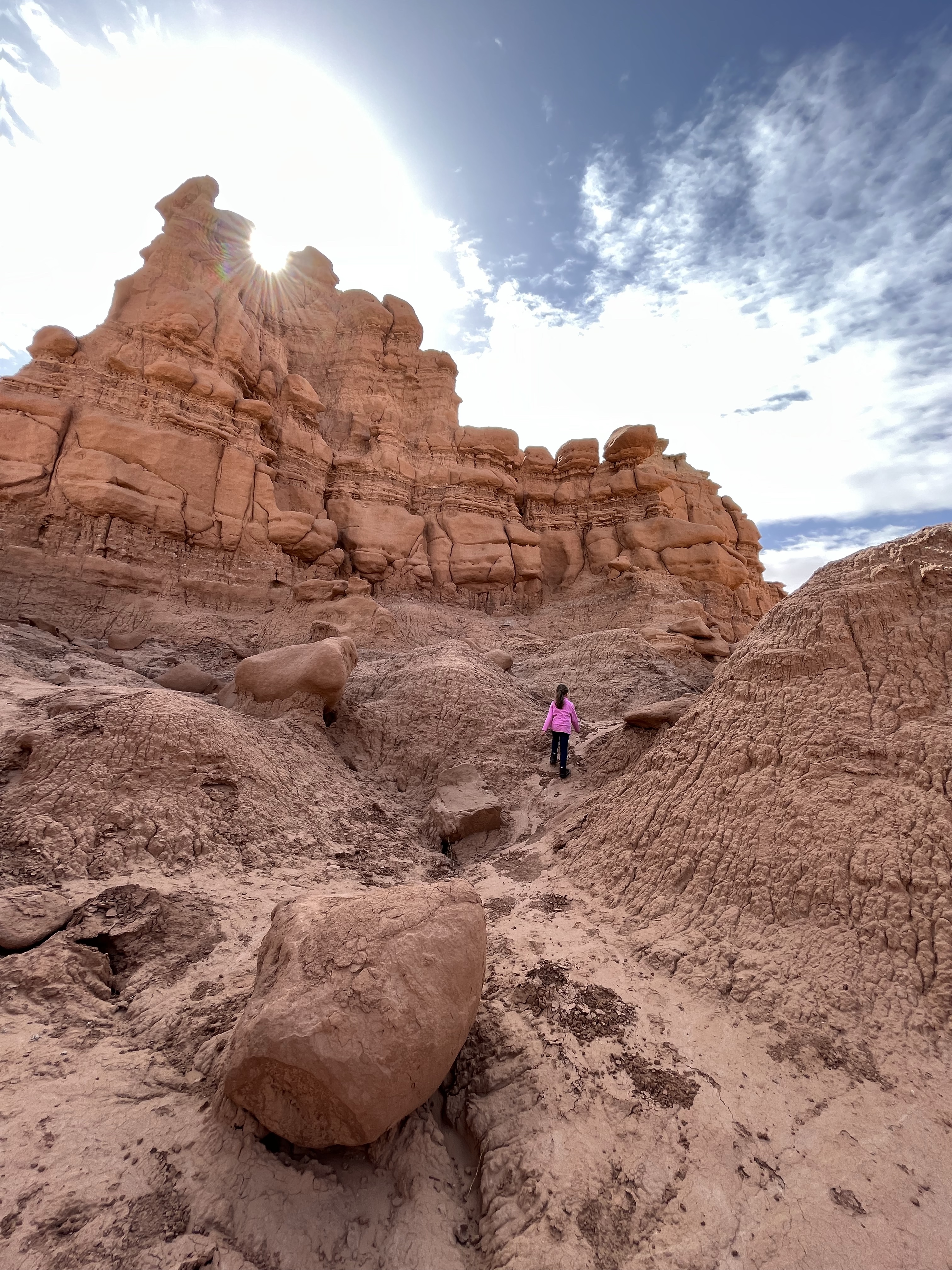 Er is basically 1 weg die leidt naar de “valley of the goblins”. Goblins zijn een soort van tovenaars/trollen wiens hoeden je hier in t landschap kan zien. Soit, we dikten t verhaal naar onze meisjes toe misschien wat verder aan met iets van elfjes en magie.. kwestie van hen enthousiast te maken voor de wandeling…