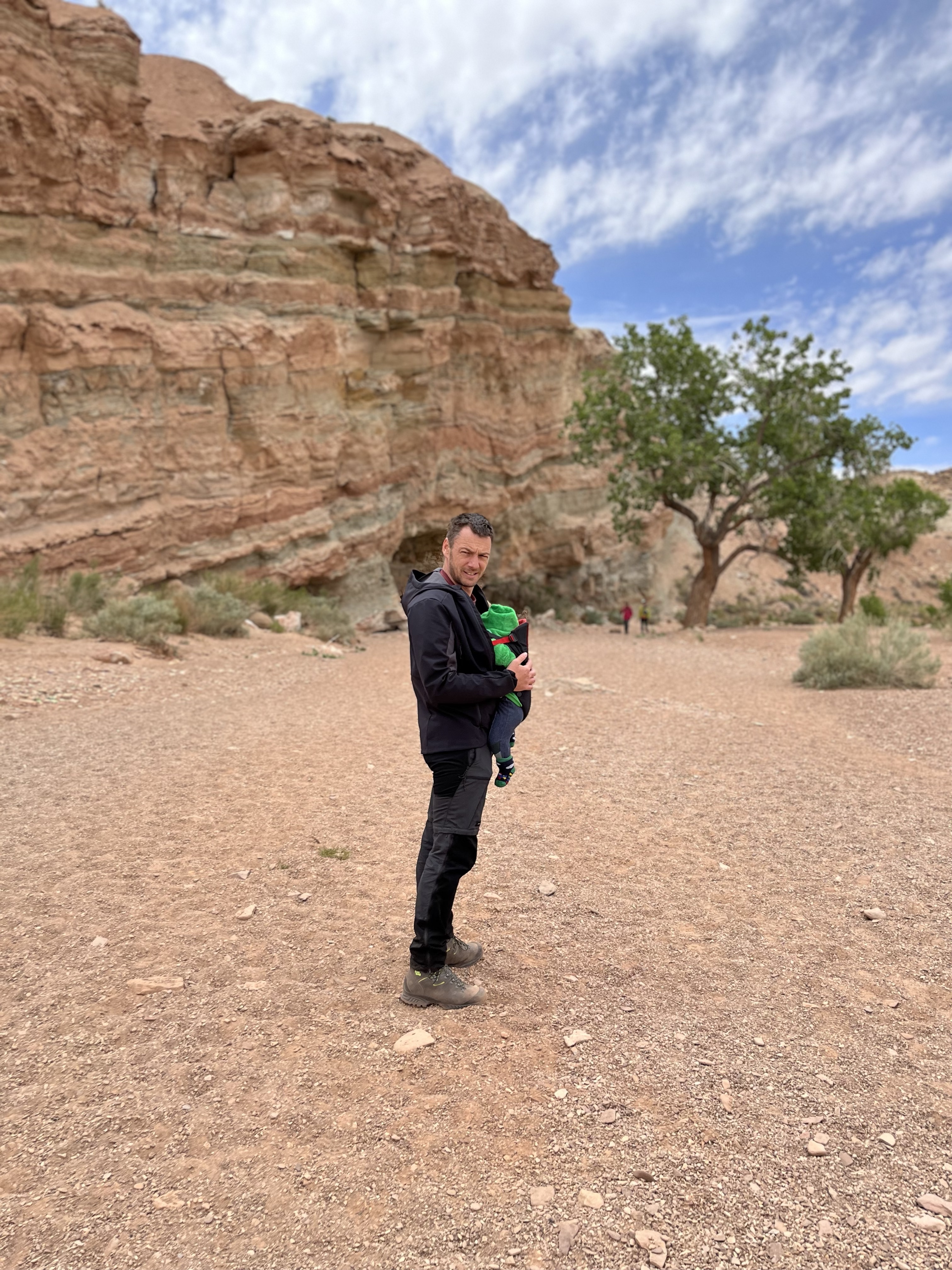 Dus… langs dezelfde weg terug. We stopten bij de Corona Arch Trail… alleen, die bleek ver boven ons petje in kilometers en met laddertjes op t einde. Weeral dropen we af… doeme toch!