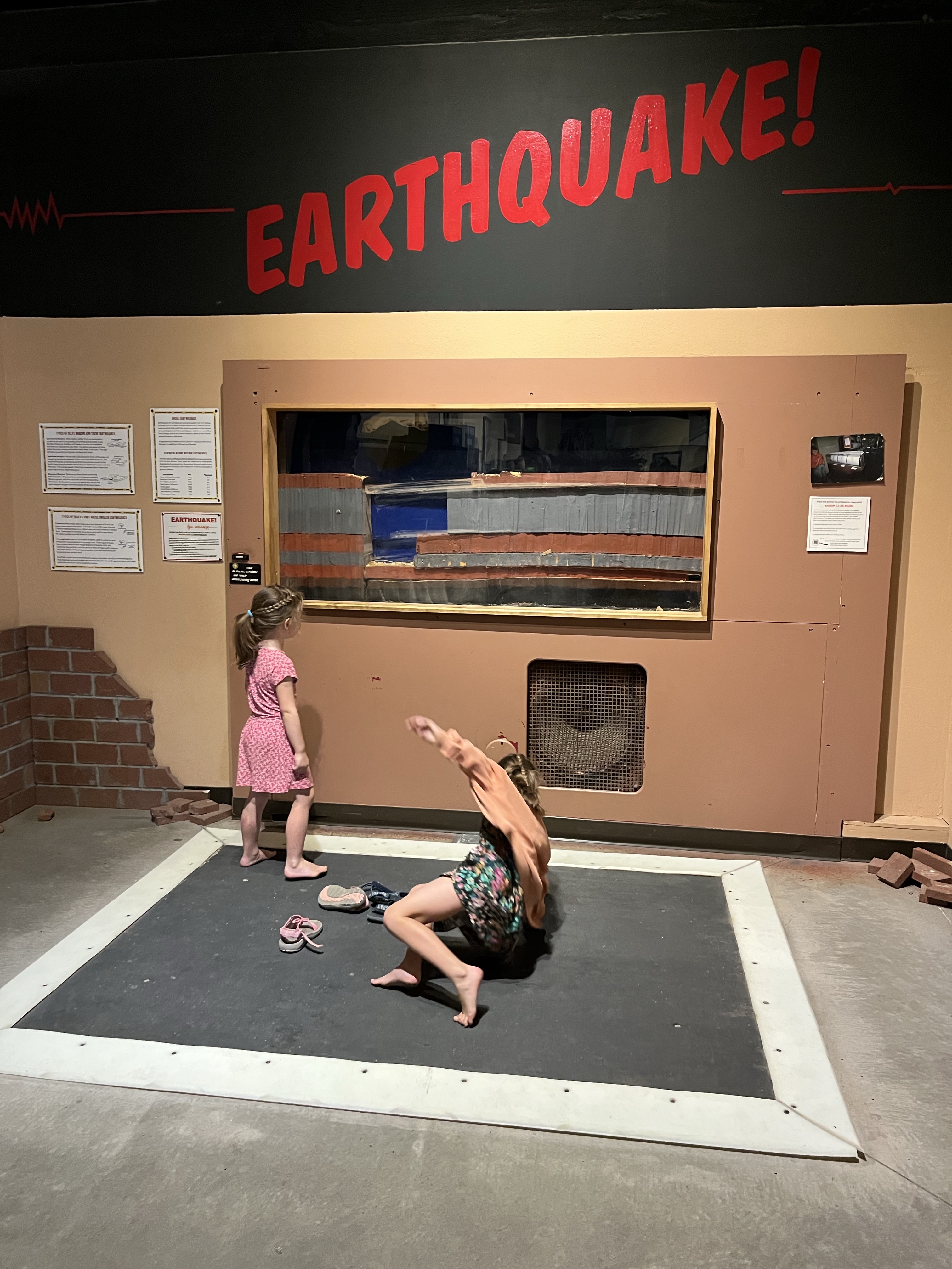 In het museum kon je bijleren over de soorten die hier in de regio gevonden zijn. Maar, je kon ook op een trilplaat een echte aardbeving meemaken. Het museum zocht duidelijk nog een nieuwe donateur voor wat opsmukwerk maar wel fijn en interactief voor de kids die ook als paleontoloog konden opgraven, puzzels doen etc.