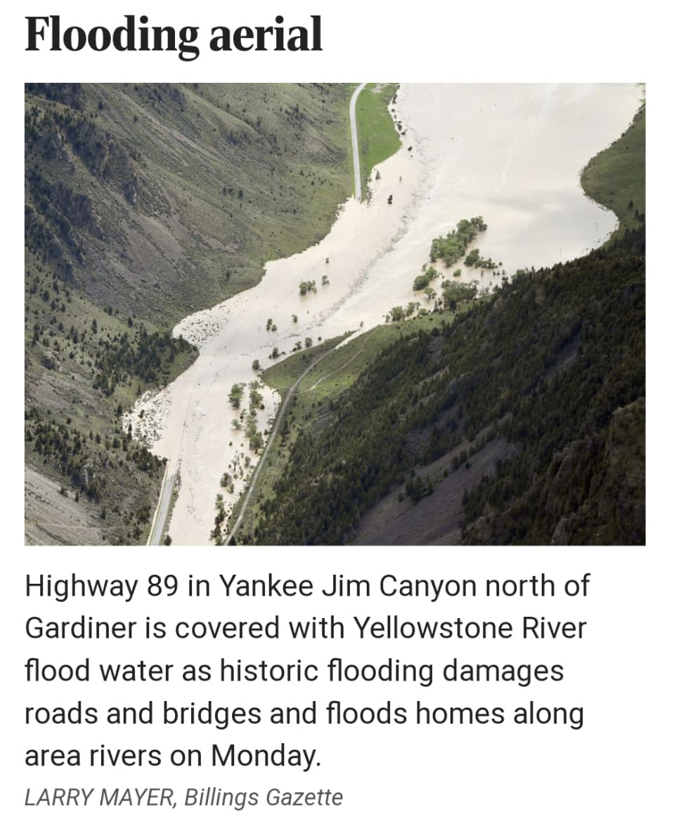 In Yellowstone besloten ze dan ook alle ingangen te sluiten en alle toeristen uit het park te evacueren. We zagen de hele dag helikopters die de hikers uit het backcountry gebied en de berghutten gingen ophalen. Men gaf ons al mee dat het ettelijke dagen ging duren om die weg te herstellen en dat we toch meer kans maakten op de autostrade 89 waar we eerder waren. Alleen daar was ondertussen niet alleen water maar ook een ingestortte brug…