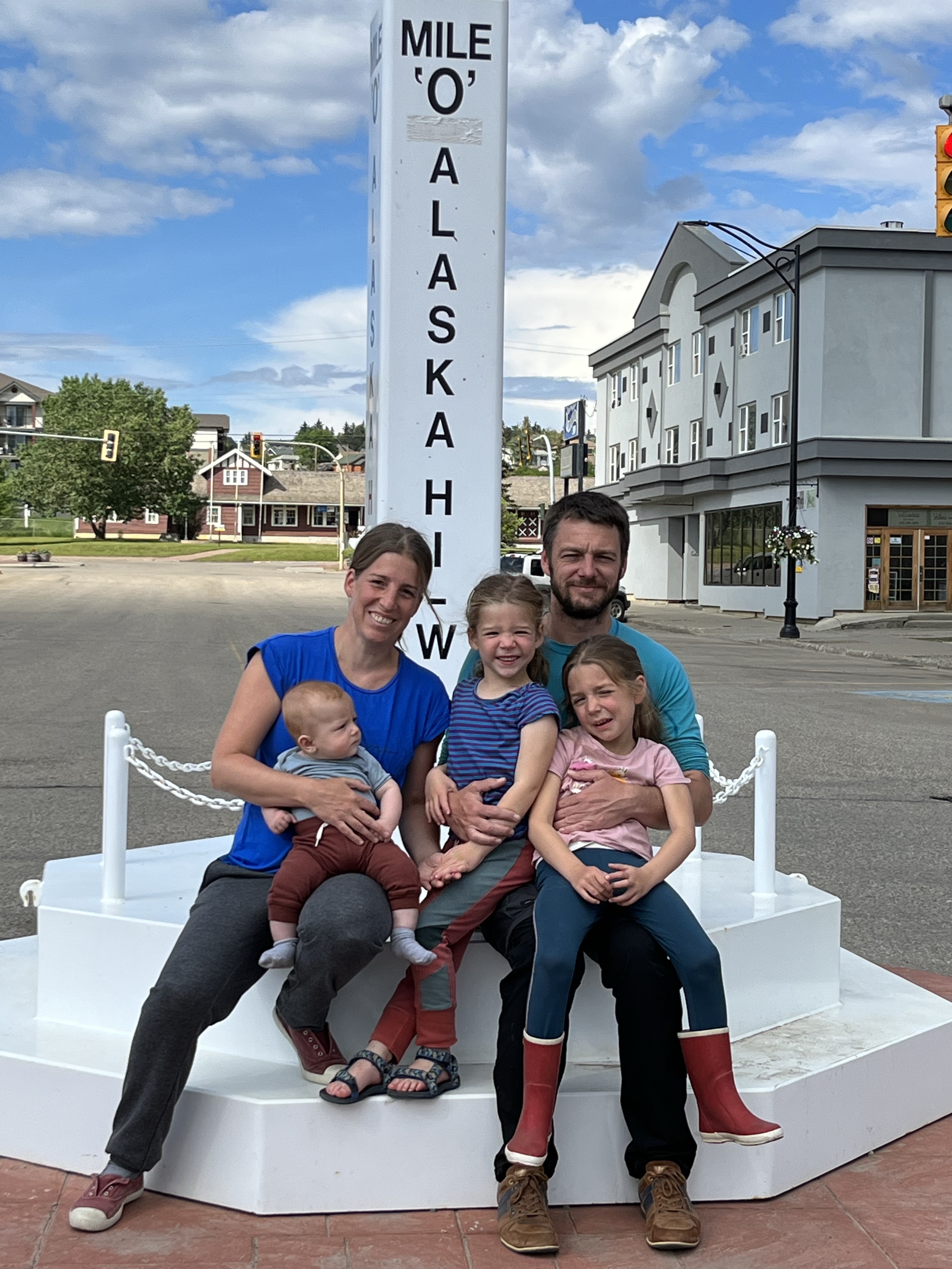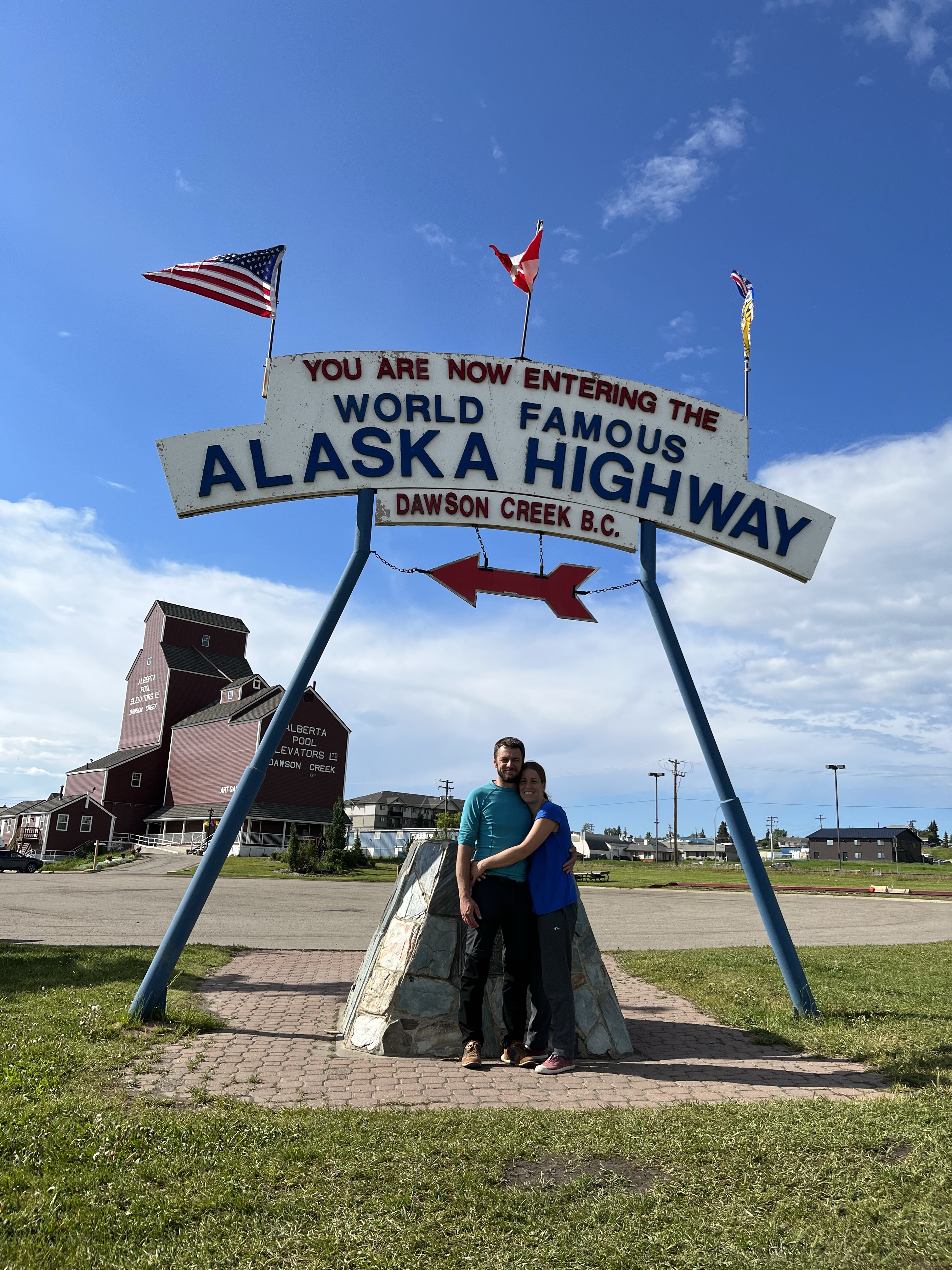 De goede raad die we meekregen was om een stockup te doen in Wall Mart in Grande Prairie omdat winkels schaars zijn. Dus… snel een half uurke binnen in de supermarkt voor wat essentials en dan doorperen naar de officiële start van de Alaska Highway. Achteraf zouden we nog 3x een grote Wall Mart tegenkomen dus ik vermoed dat ze een percentje kregen ofzo voor iedereen die ze langs stuurden 🤣. Maar t feit is wel, de rest van de echte Alaska route kom je dus zo goed als niks tegen. Op dag 1 ging onze haarborstel op wandel… 3dagen later zitten we hier nog met ongekamd haar te wachten op een supermarkt 🤪