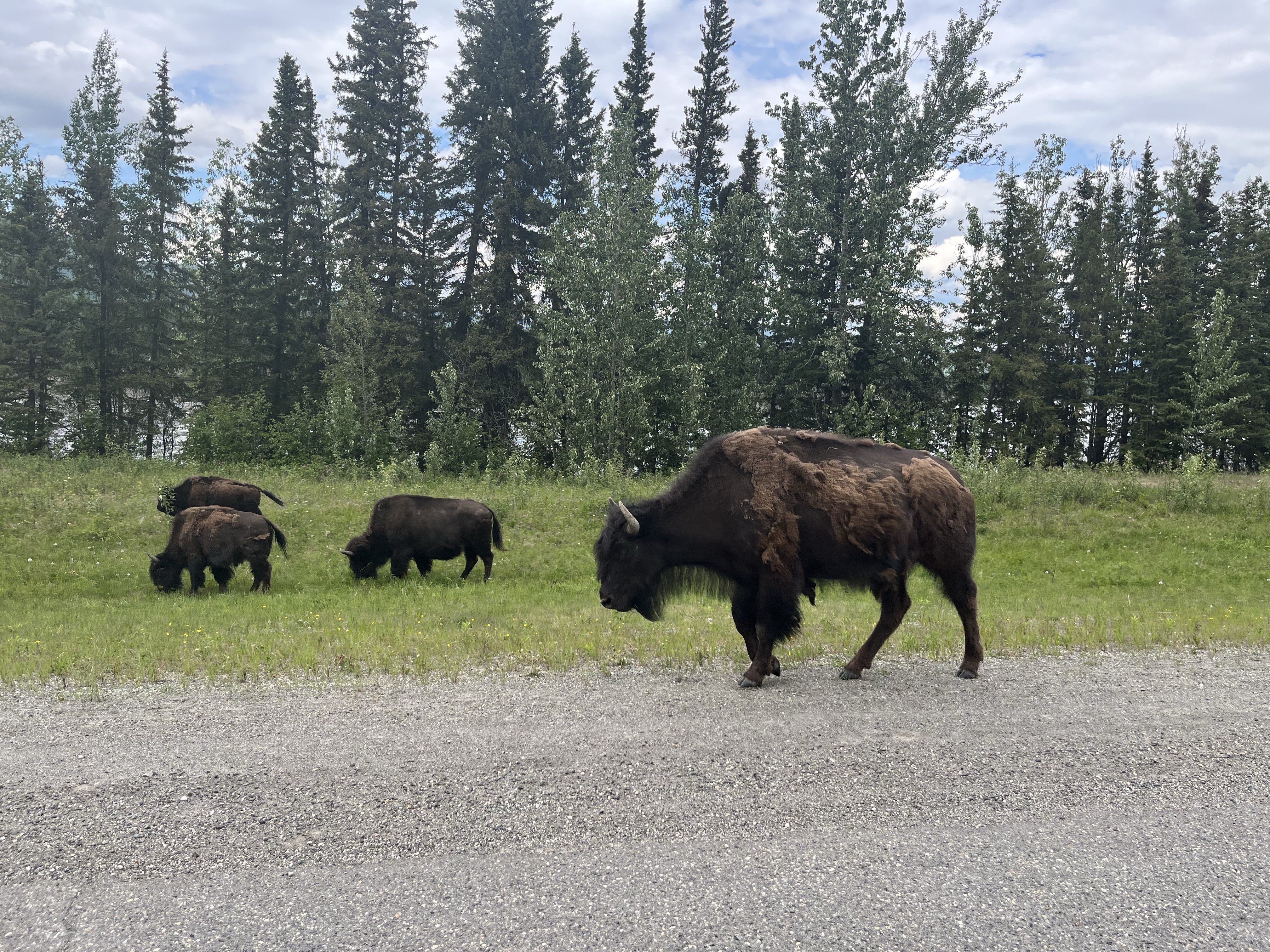 Onze dierenscore voor vandaag: heel veel bizons buiten de camping, een vos, 1 zwarte beer in de berm en helaas ook 1 dode aangereden zwarte beer…