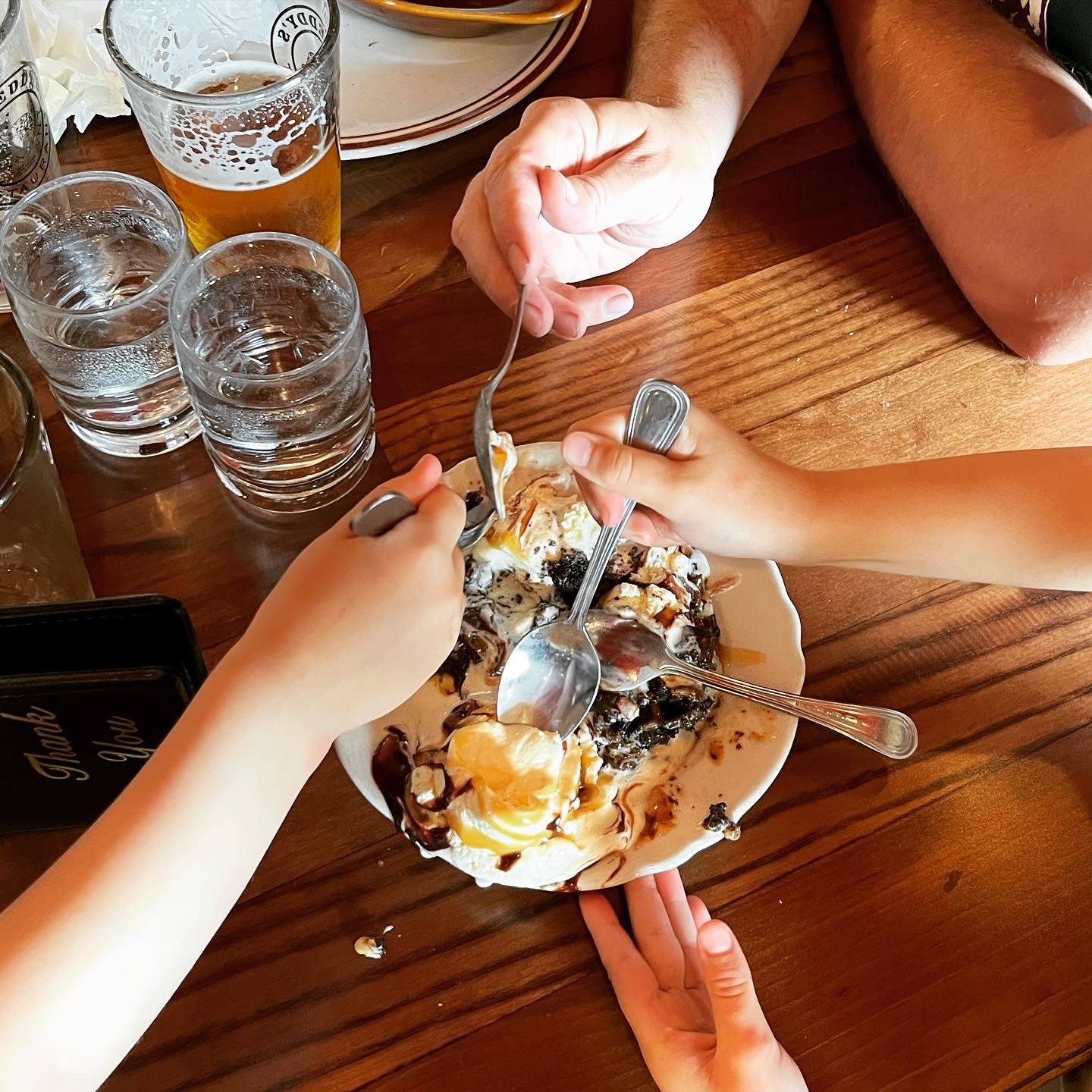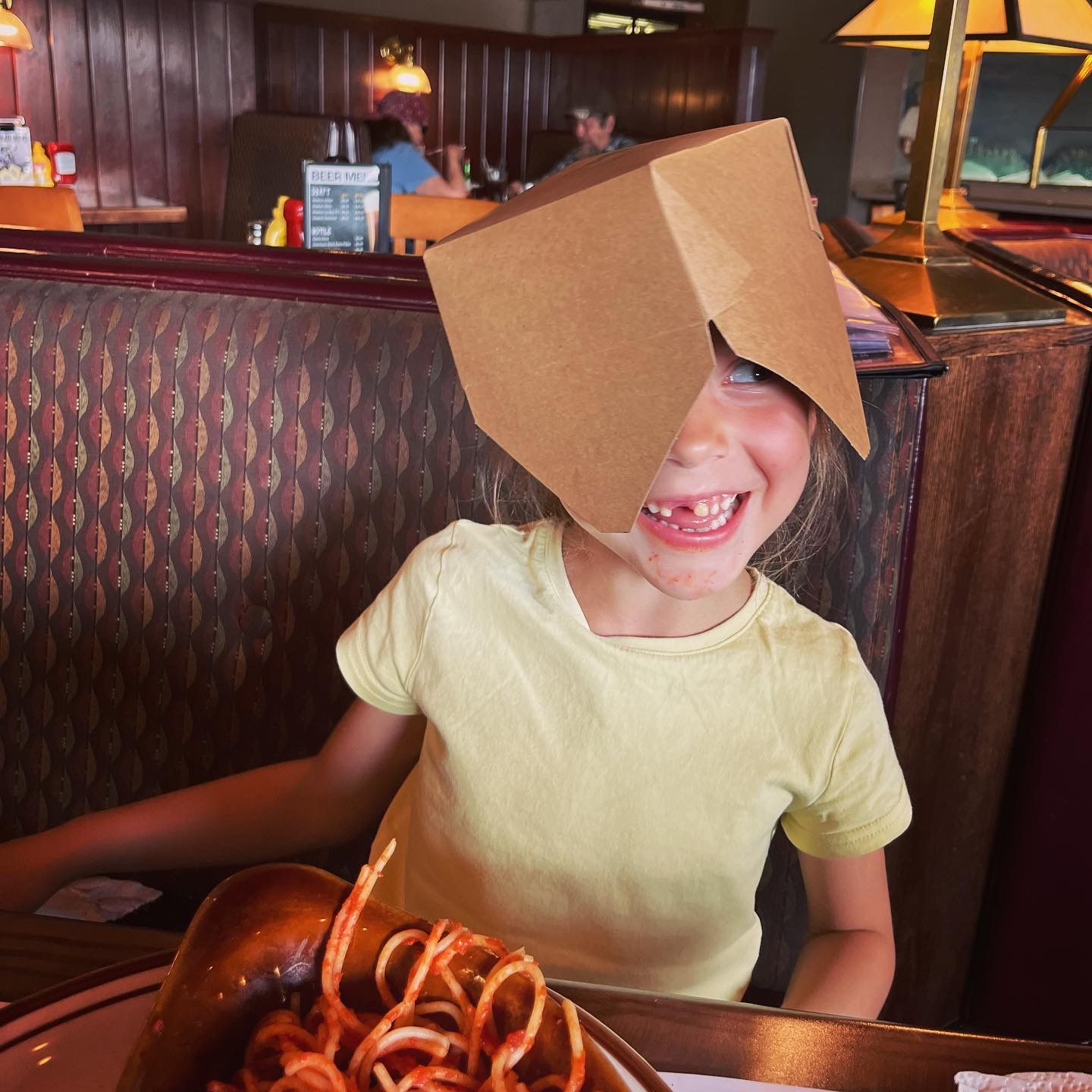 De pintjes en pizza smaakten en de overschot ging mee in een doggy bag (al kende Ava dat concept nog niet en snapte ze eerst niet wat ze aanmoest met die doos… zie foto)