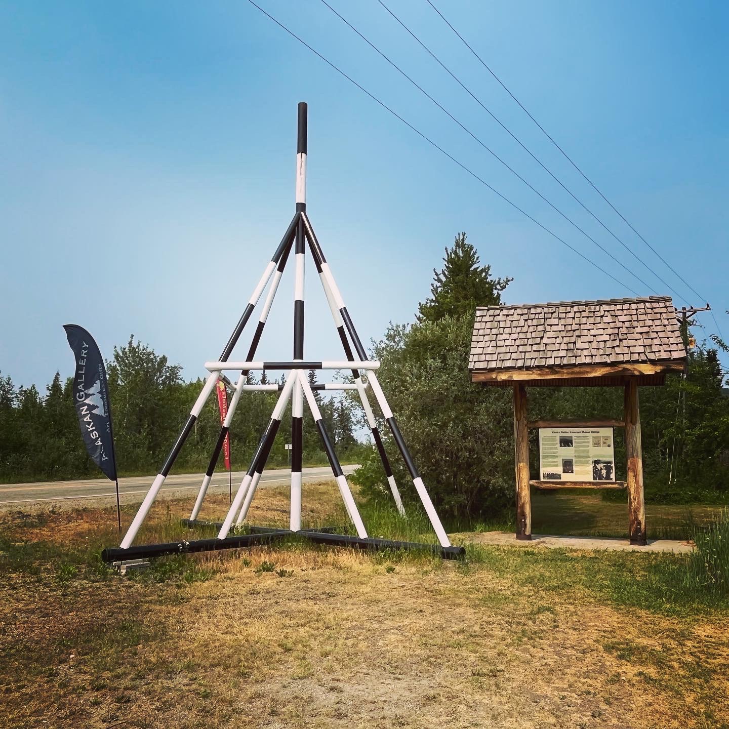 Nenana is trouwens een tof stadje met een pak native kunstenaars die vanalles verkopen in toffe winkeltjes. En een stadje met een leuke traditie… Elk jaar kan je tussen februari en april geld inzetten op wanneer het ijs zal breken en de beroemde zwart witte driepikkel toren door t ijs zakt… 200.000$ winnen… niet slecht. Dit jaar deden 17.000 mensen telefonisch mee van heinde en ver. Tot 5 april kan je inzetten…. Wij leggen alvast een paar dollar apart 😅