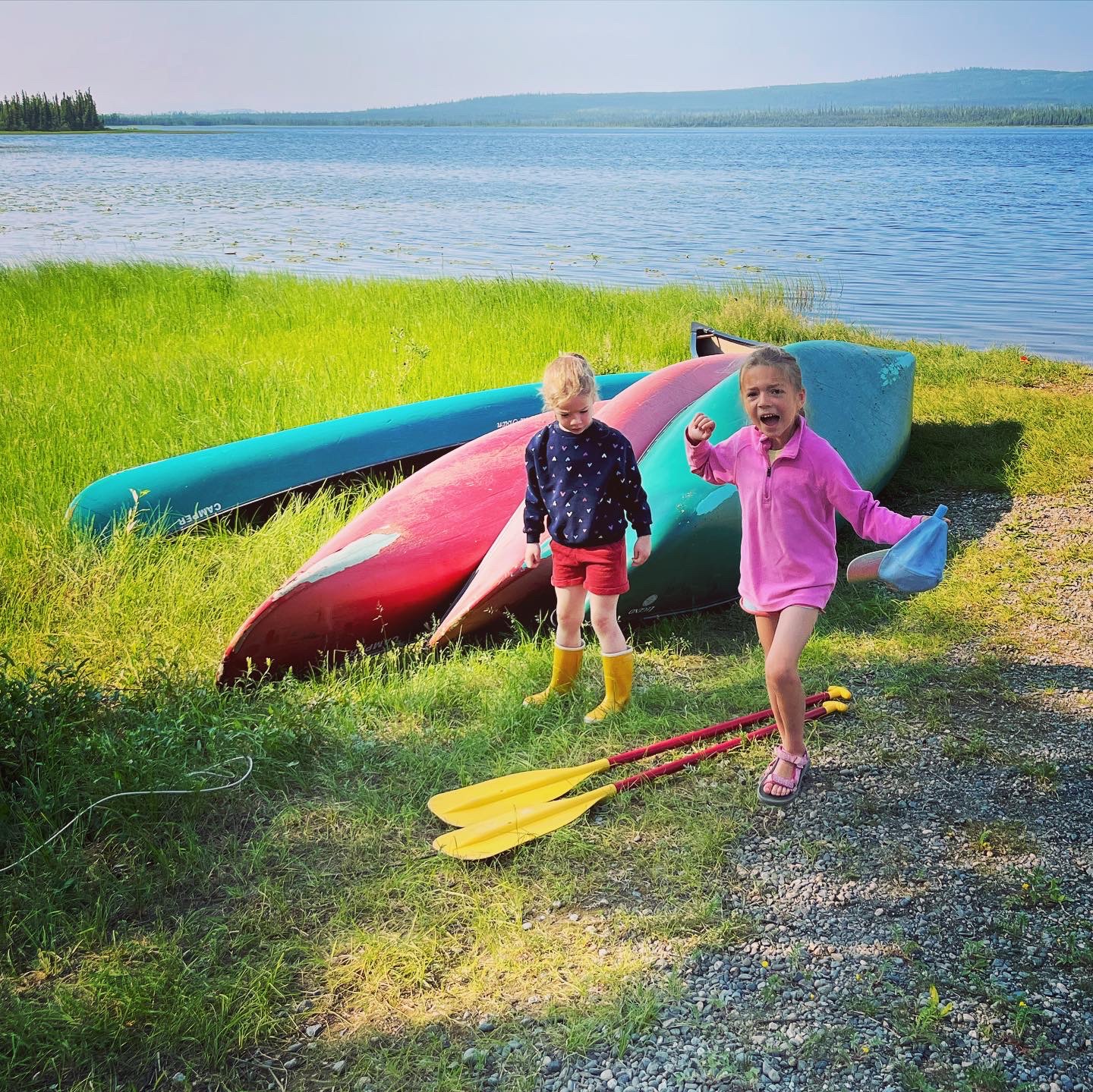 Zoals telkens in onze 11j durende relatie een kajak-discussie over “neen naar den andere kant peddelen” of “gij peddelt te diep of niet diep genoeg”… maar soit, de kids met een smile tot achter hun oren. De meisjes gingen ook nog eens apart met Christoph en Ava kreeg zelfs nog een prive ritje met haar papa. Ze kwam terug aan wal met een tand minder… eindelijk na 10dagen was die losse voortand dan ein-de-lijk het gevecht tegen de zwaartekracht verloren…