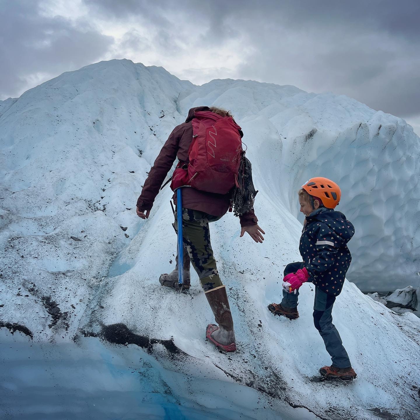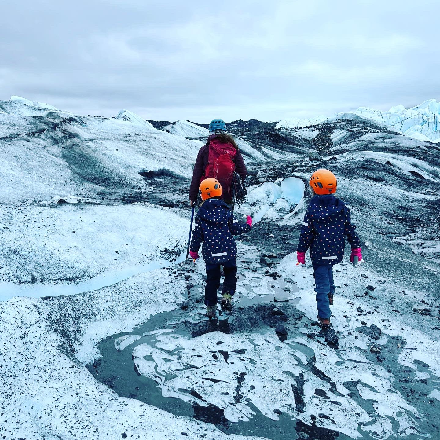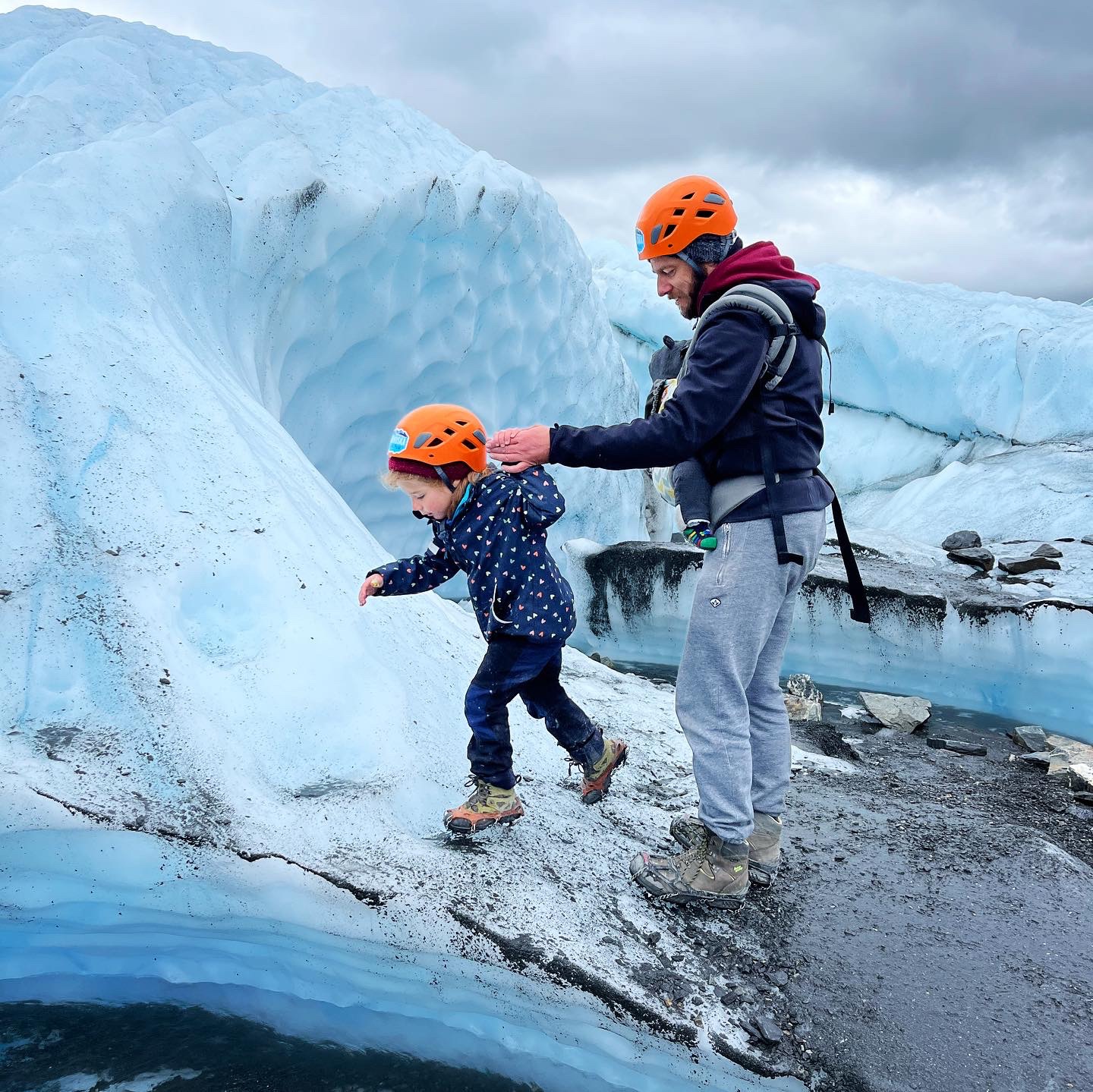 Was dat dan niet lastig met kids? Euhm nope, die deden mee wat elke volwassene deed⦠al kwam de uitleg getolkt soms een fractie te laat om een modderschoen in drijfslijk te vermijden š¤ Uiteraard moesten onze kids midden op die gletsjer effe kijken of pipi een gele vlek zou maken 𤣠maar Noah wachtte flink met eten tot mama weer het ijs af was en in een warme mobilhome zatā¦.