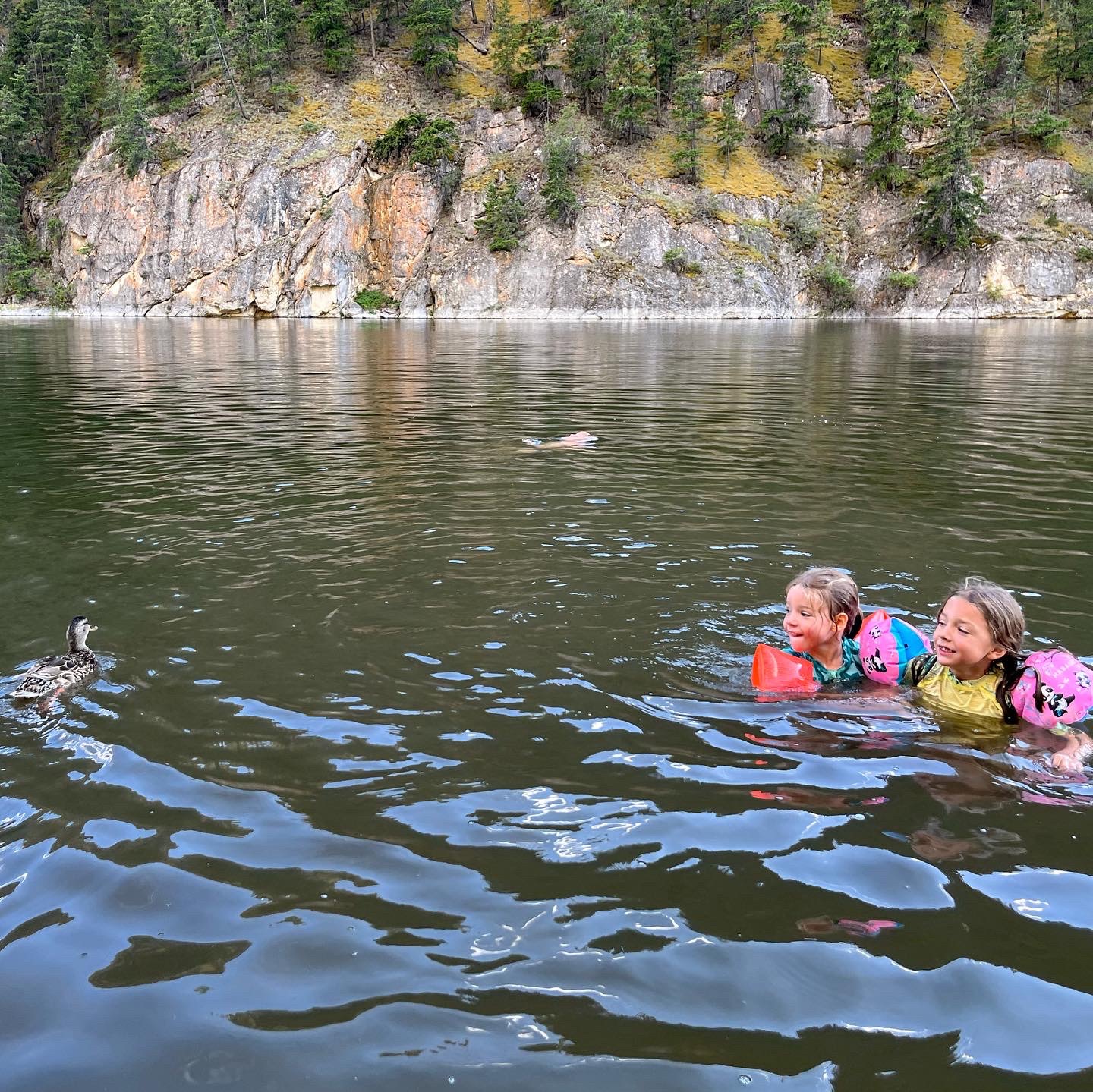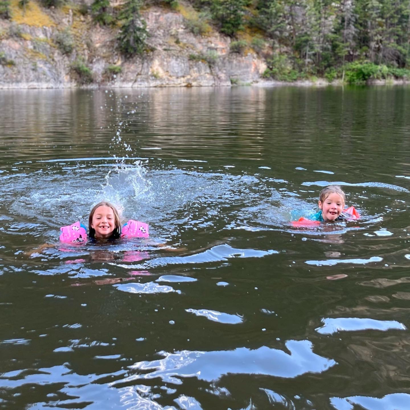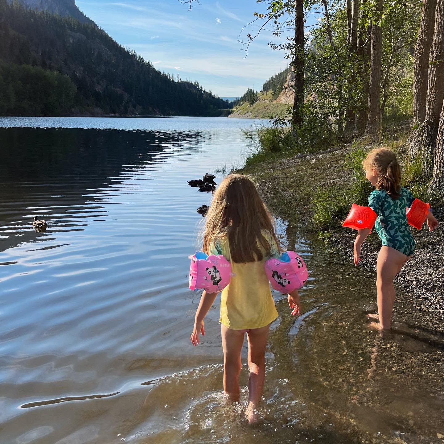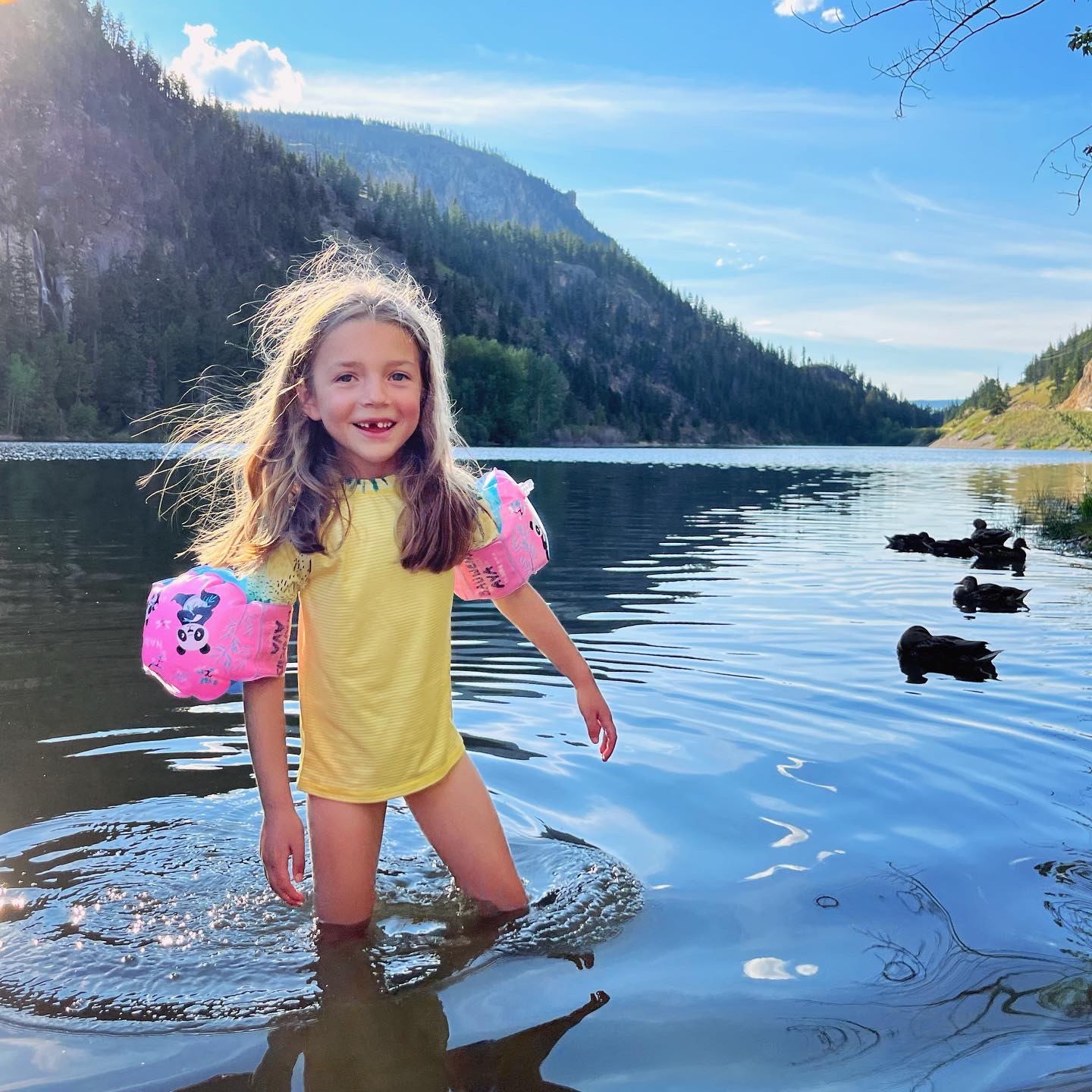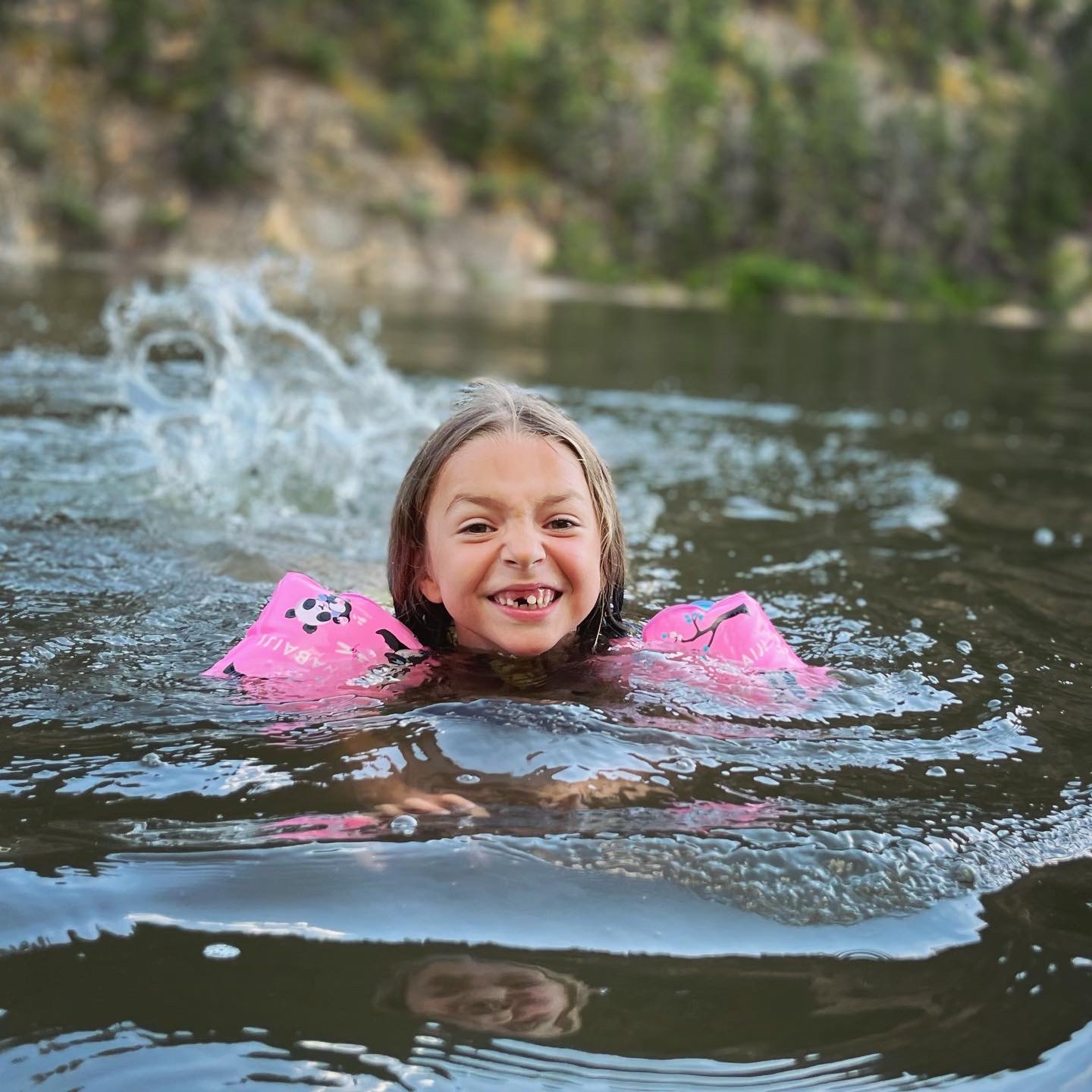 Er waren een pak families op de day use area, hier en daar wat vrienden met een vrolijke cigaret (cannabis is hier legaal dus kom je ook wel meer openlijk tegen)… Waar Ava maanden geleden nog huilde bij elke zwemles was ze nu vastbesloten over te zwemmen. Trots dat ze was dat ze verder durfde dan ze kon staan! En maar zwemmen… “kikker vliegtuig pijl” riep ze luid! Zwemjuf Tine was er dan wel niet om de vorderingen te zien, mama Tine stond trots op de oever 🤗