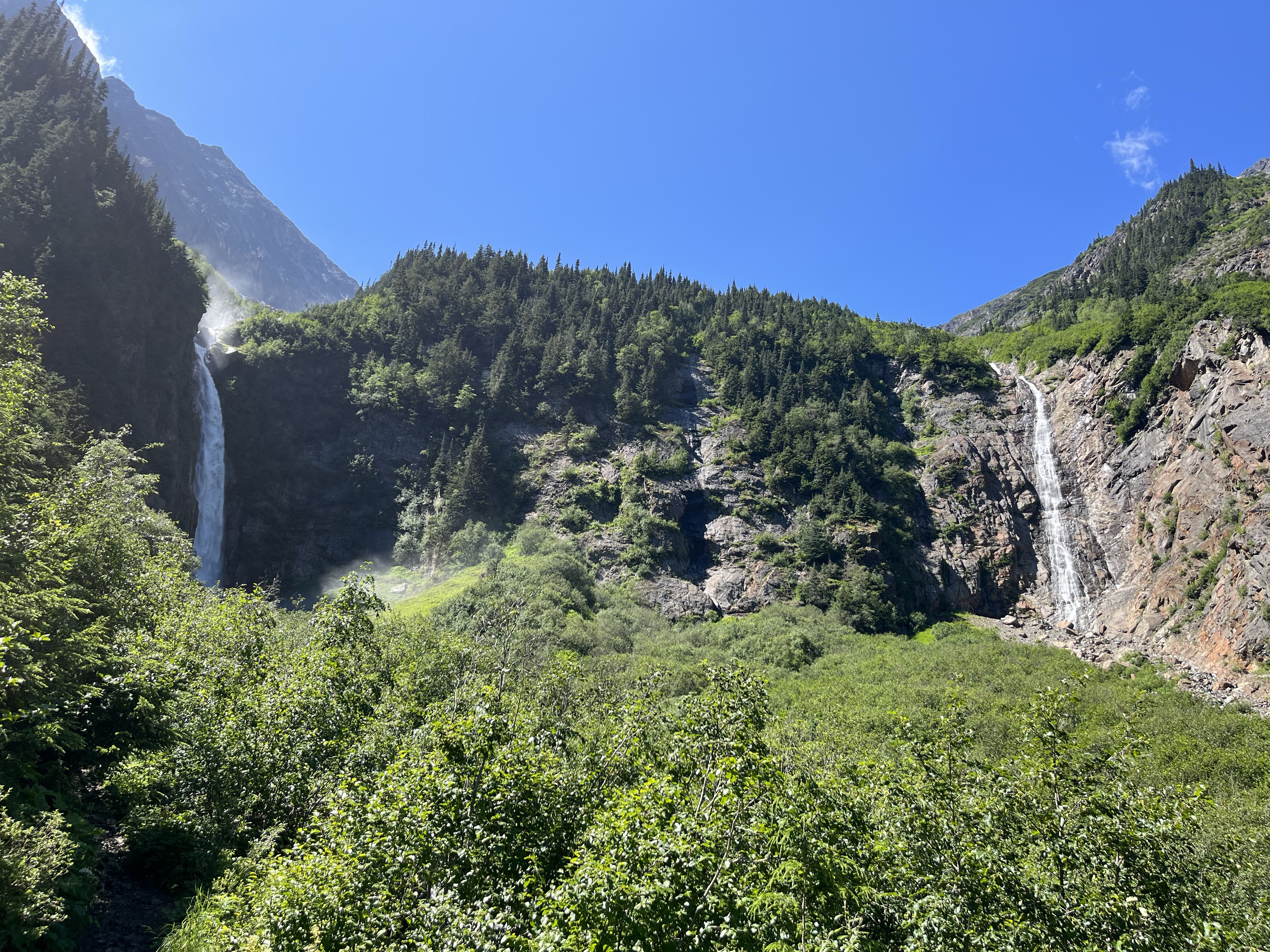 We vervolgden de route en 70km verderop was t opnieuw tijd voor een zijsprongetje naar de Twin Falls en een gletjser. De wandeling was super kort en uiteindelijk duurde het hele pamper verversen/draagdoek stoppen/wandelschoenen aandoen verhaal weer 3x langer dan de daadwerkelijke wandeling 🤪.