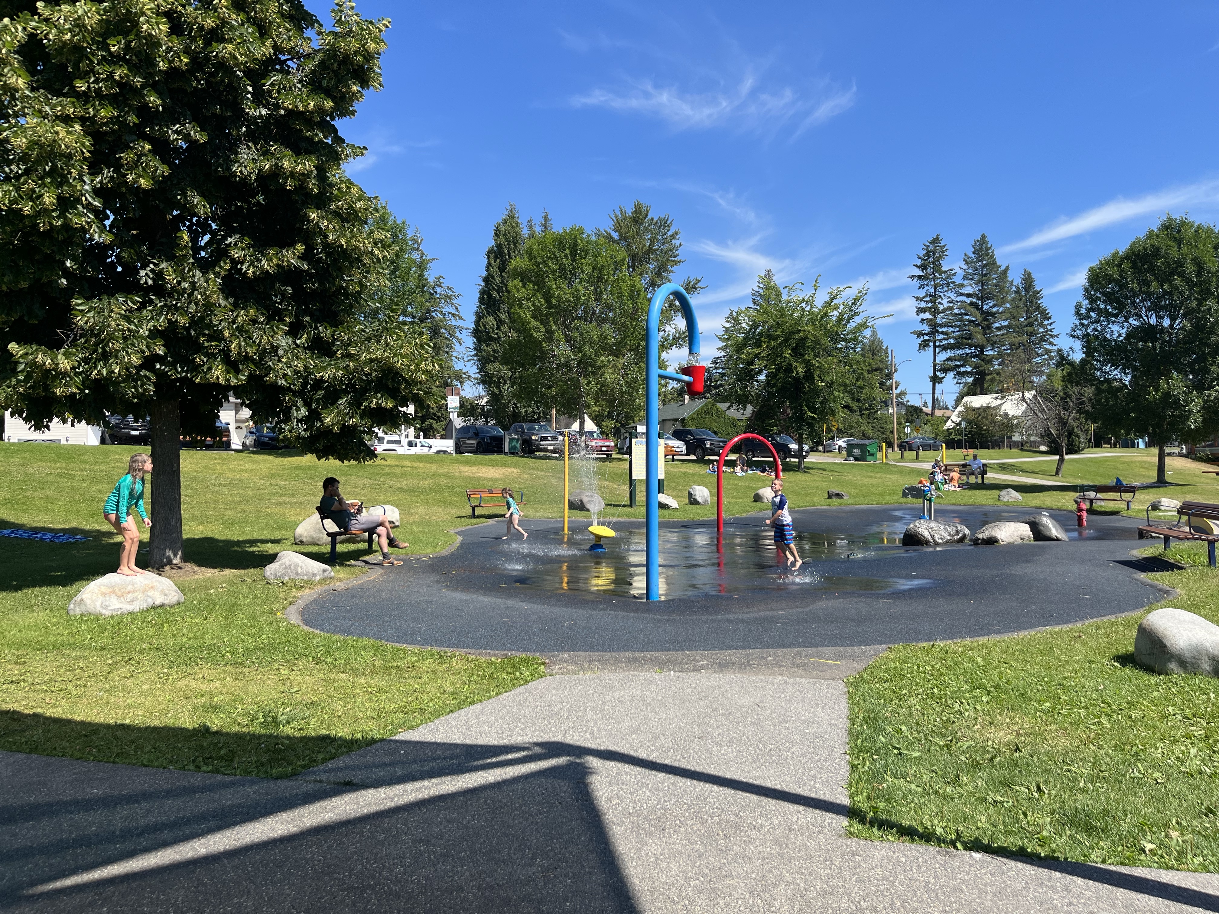 Als beloning stopten we nadien in het waterpark achter het visitor centre waar we geparkeerd stonden. Opvallend trouwens, hier kan je vlot gratis parkeren in de meeste steden. In het park waren bovenop de speeltuin en het gratis waterpark ditmaal zelfs opnieuw picknicktafels & kampeer faciliteiten. De meisjes kwamen zeiknat mee terug naar de mobilhome. Afgekoeld en klaar voor de volgende 300km.