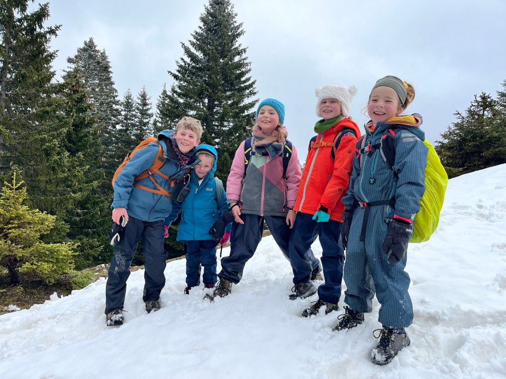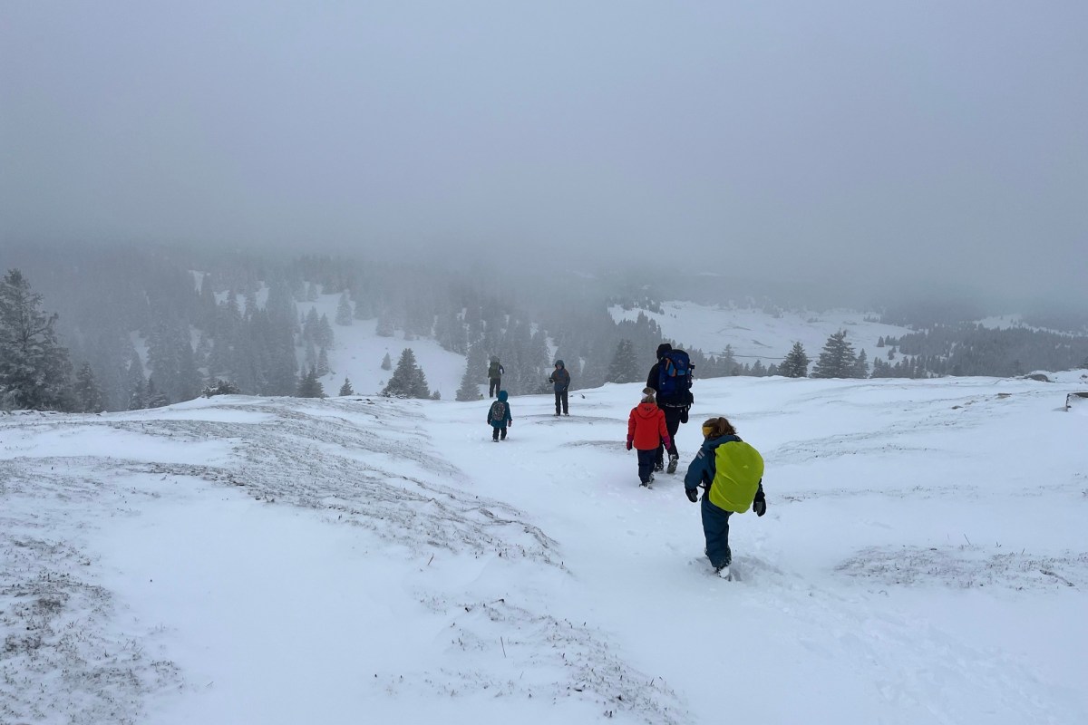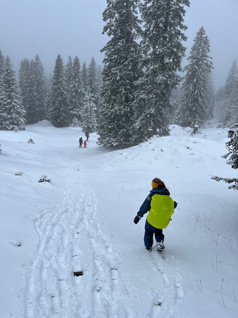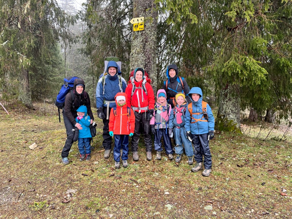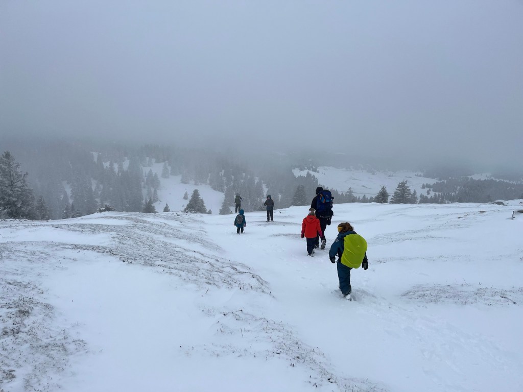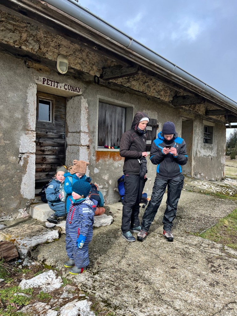 De wandeling was origineel bedoeld om af te leggen met sneeuwraketten en we wisten dat de 7km naar de berghut op zich doenbaar moest zijn voor onze kroost.