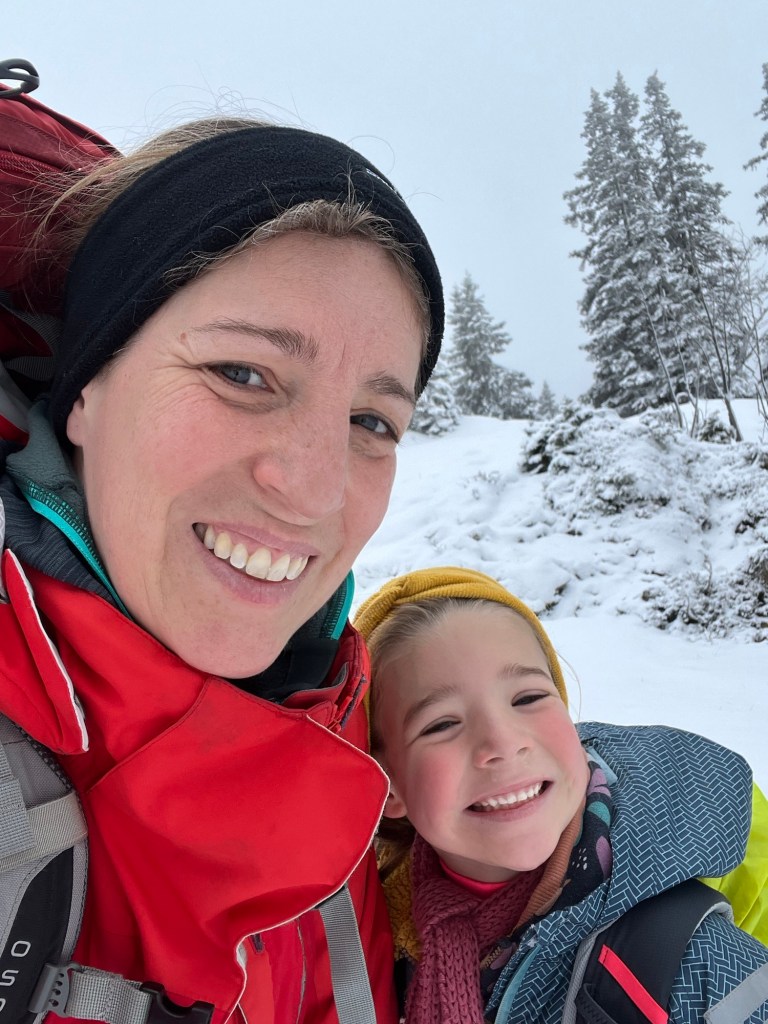 T was hier en daar klefferen door de sneeuw, maar gelukkig konden we dankzij de wandelgps en de wandelhorloge perfect hetzelfde pad afleggen als de dag tevoren. Kids werden duchtig omgekocht met M&Ms en havermoutkoekjes bij elke stop. Maar eigenlijk ging het super vlot!
