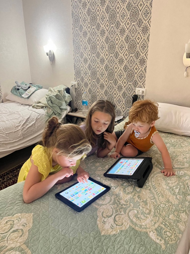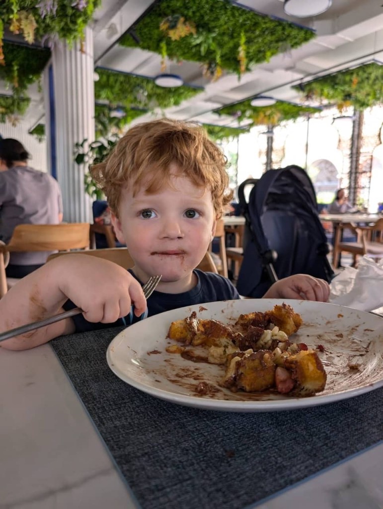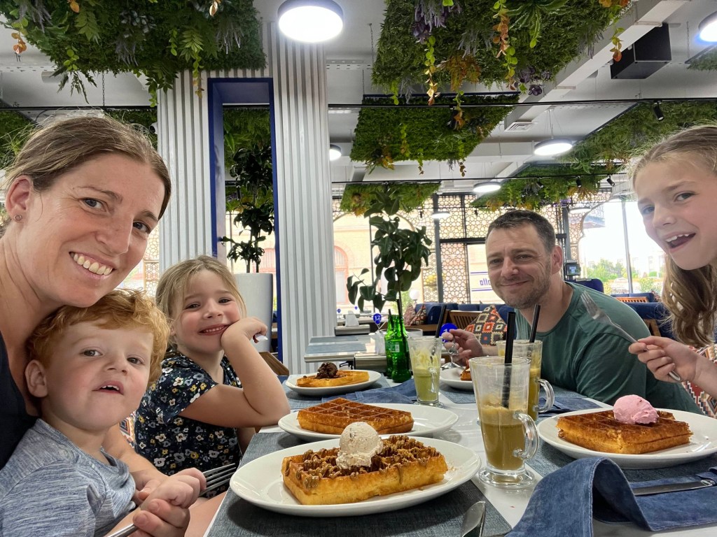 We deden kop/munt en familie Bauwens kreeg de Rumi hostel toegewezen met familiekamer. Bij aankomst was er net een electriciteitspanne dus geen airco, geen gsms opladen & er zat dus niets anders op dan de kroost te proberen overtuigen van een dutje. Het was gewoon té heet om het stadje in te trekken voor lunch. We smikkelden bijgevolg de laatste Pringles en koekjes op en probeerden hen te paaien met knutselgerief en spelletjes (als ge u afvraagt wat zoveel weegt, mogelijks zijn we (allé ik) daar wat overboard gegaan 😅)