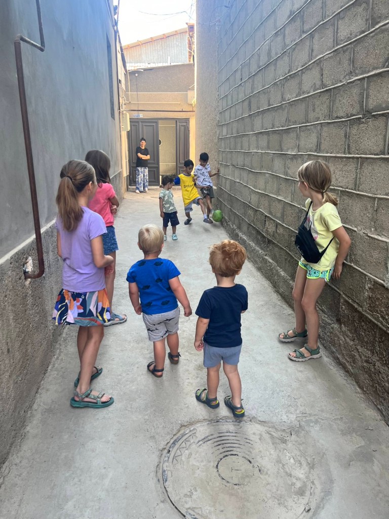 Tijd om Samarkand vaarwel te zeggen en door te reizen. Nog snel effe voetballen met de buurkindjes en dan een Yandex taxi zoeken.
