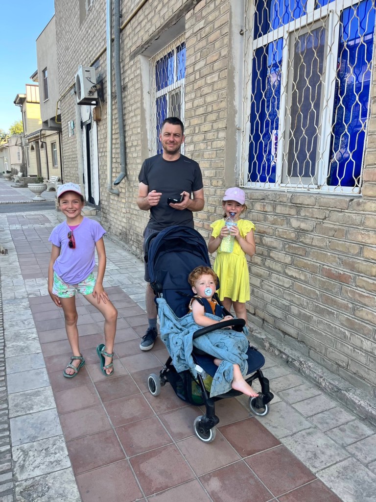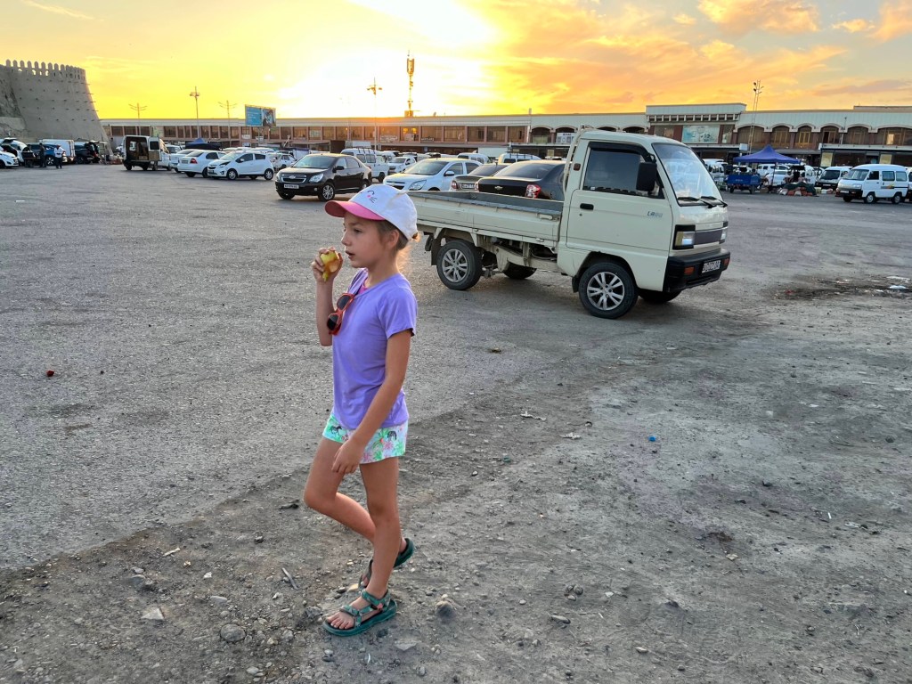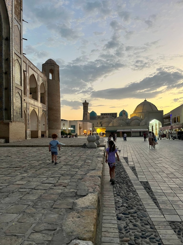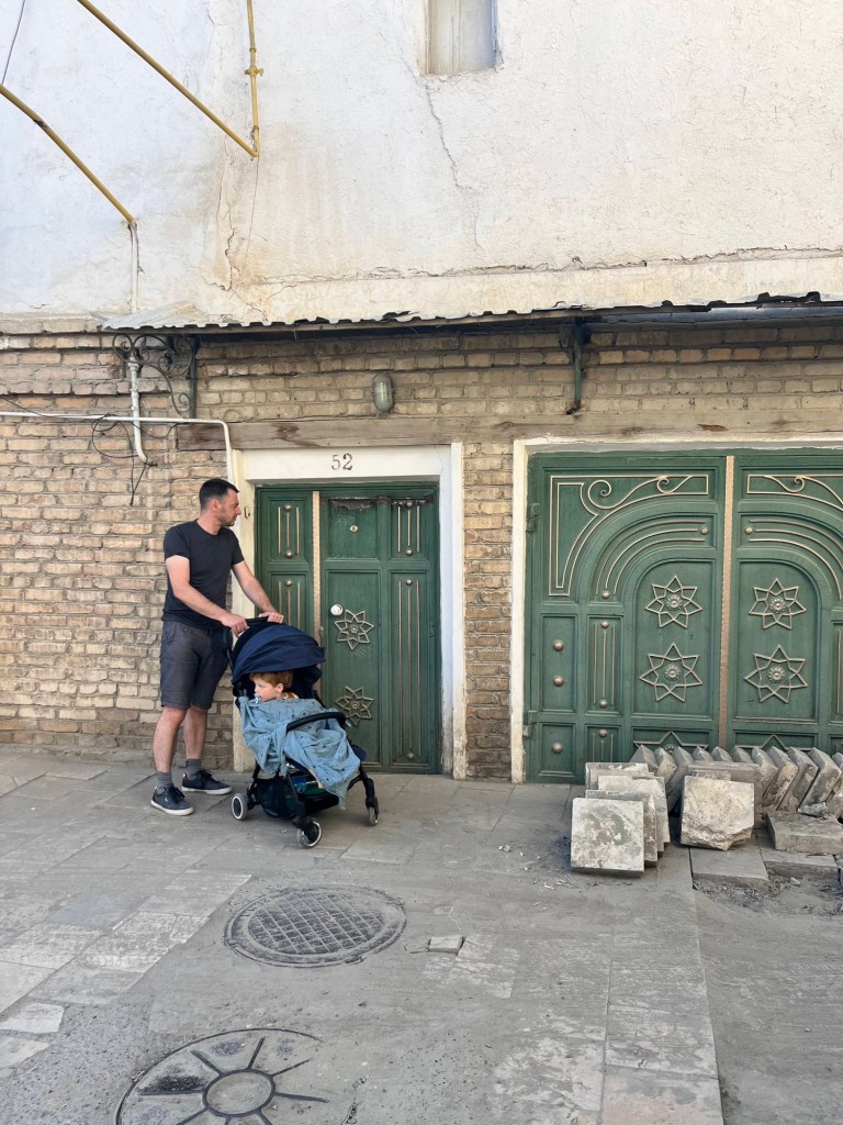 In Bucchara was t opnieuw broeiend heet en stonden overal taximannekes die schreeuwden om onze aandacht. Wij zijn ondertussen al ervaren Yandex gebruikers dus bedankten vriendelijk voor een echte taxi en gingen elk apart naar onze overnachtingsplaats. Voor t eerst hadden we niet 1 groot huis of hetzelfde hotel, maar 2 aparte locaties waar elk gezin zou overnachten.