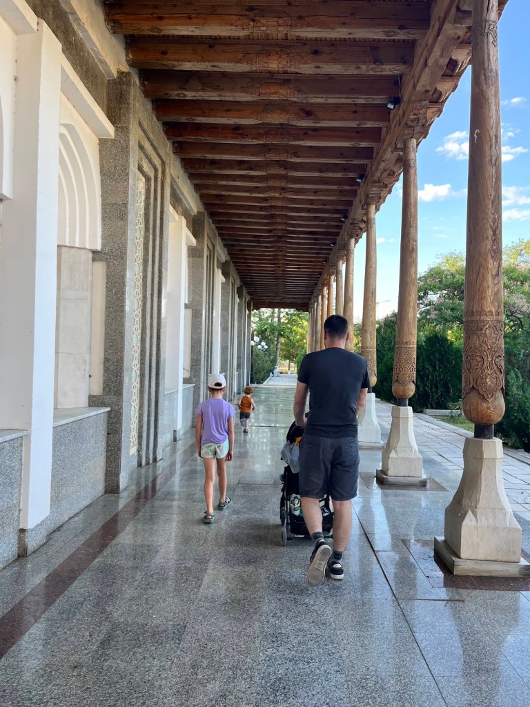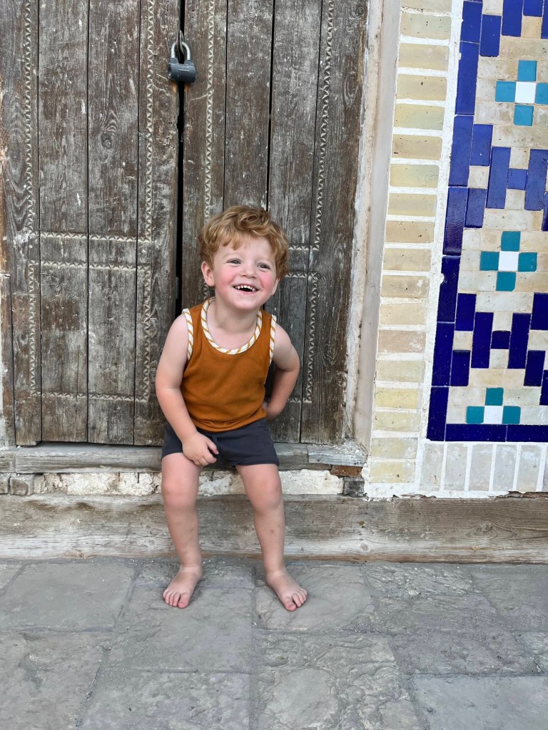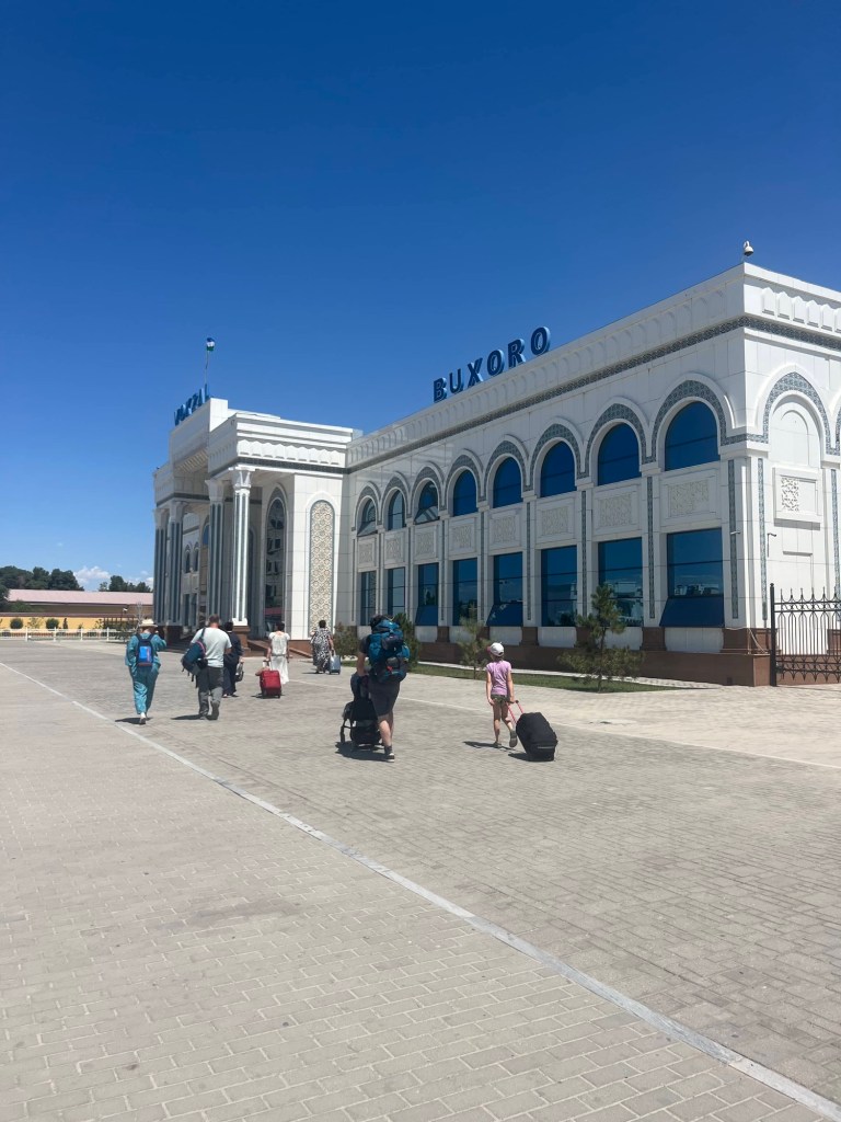 Het is amper 2 u treinen vanuit Samarkand naar onze nieuwe bestemming. Opnieuw super vlot de weg gevonden en onze plaatsjes op de trein. Eigenlijk doen alle kids dat mega flink. En t moet gezegd zijn, de Oezbeken helpen ook wel buggy heffen/ valies binnenstompen of kind de trap op zeulen. Ondanks dat onze trekkersrugzakken weer veel te zwaar zijn (en dan staat er al 40kg warmere kleren en kampeergerief in Almaty) overleefde de relatie ook die treinrit. Mogelijks moet er wel vanalles weggegooid worden om de rest van de reis als koppel te halen 🥵. Kan iemand mij de volgende keer gewoon eraan herinneren dat een trekkersrugzak maar 3/4 vol mag zitten?