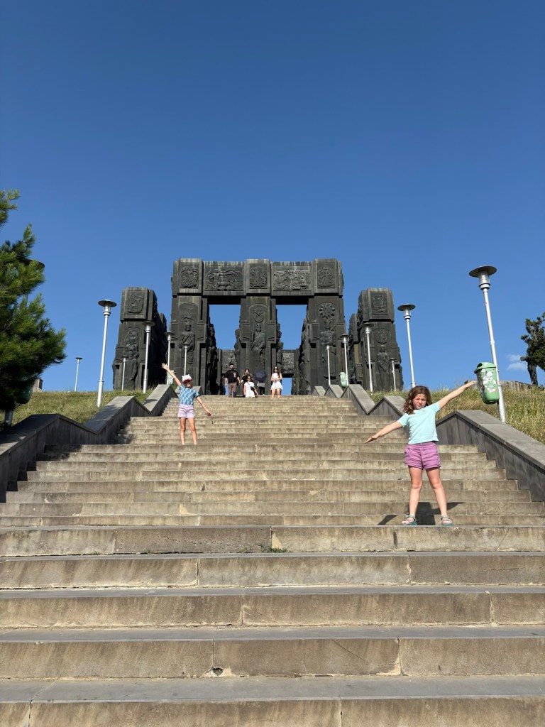 De Persyntjes hadden het beroemde “Chronicles of Georgia” monument al gedaan, wijzelf gingen voor we het hotelletje zouden opzoeken nog even de toerist uithangen om toch ook die touristische hotspot te kunnen afvinken. Onze kids deden van crazy fotomodellen, spring foto’s en vooral veel koekjes fretten.