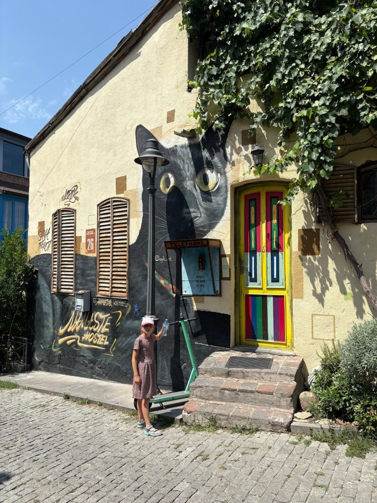 We meanderden door de kleine straatjes vol oude gebouwen, bouwvallige gevels, huisjes en appartementjes met veel terrasjes vol druivelaars… vergezeld door straatkatten. T viel echt op, in alle andere steden en zelfs boeregaten loopt t vol straathonden maar in de hoofdstad zijn katten koning! Amper een straathond te bespeuren!