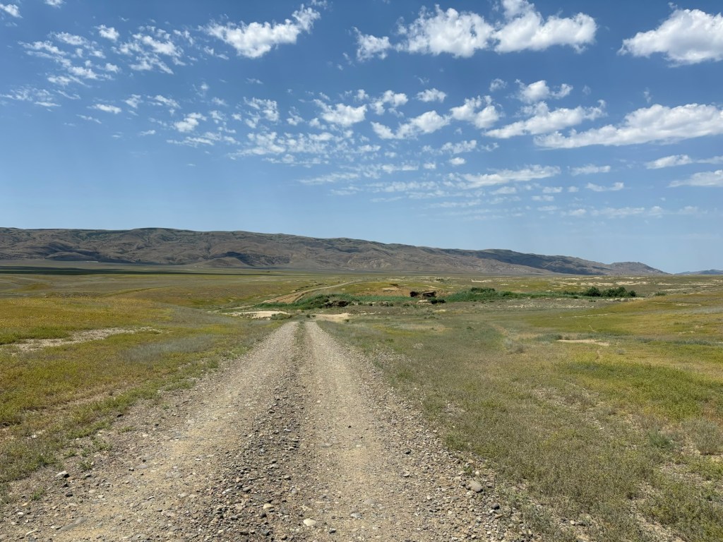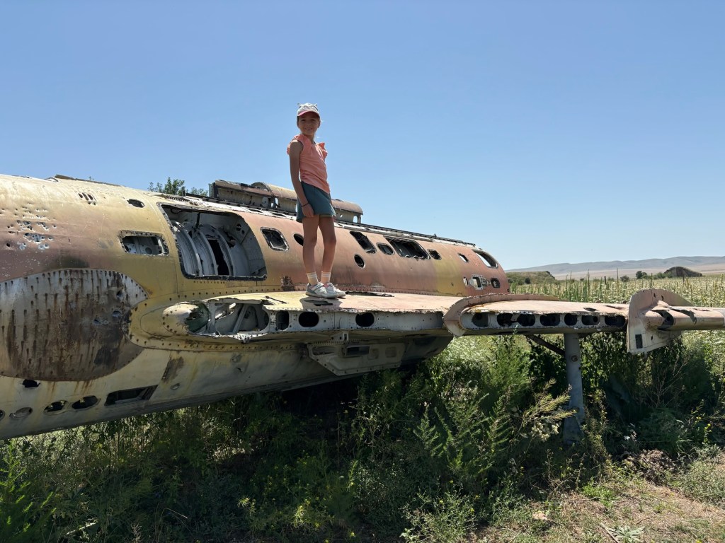 Ountravela Route 6 klonk veelbelovend en als eerste stopje vonden we een verlaten Russische legerbasis waar de hangars en een bommenwerper gewoon aan de natuur overgeleverd zijn…. Ondanks de smeltende temperaturen toch eventjes uit de auto.