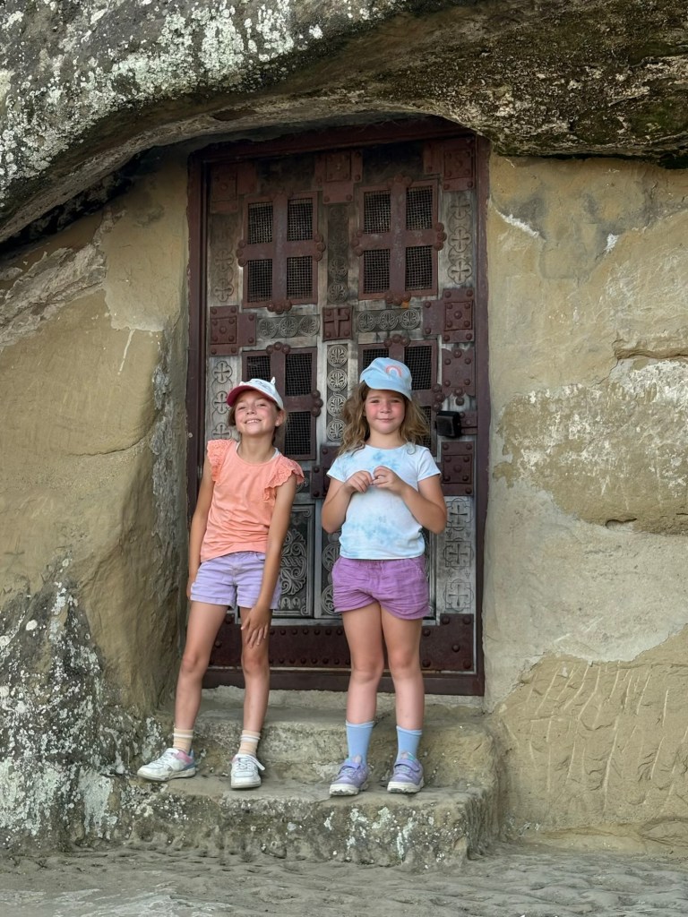 Bij het laatste klooster Natlismtsemeli met de ontoegankelijke toren stuurden we opnieuw enkel Christoph en Lia op pad, iemand moest de auto, slapende Noah en het zakje snoep bewaken, nietwaar?