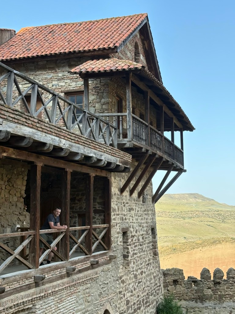 Voila, route 9 zat erop. Nu restte ons enkel nog het beroemde David Gareje en Udabno klooster op de grens met Azerbijan. Een prachtig complex dat ze heel mooi aan t restaureren zijn. We zagen zelfs een paar monikken en werden vriendelijk verwelkomd door de grenspolitie die ons exact zei hoe ver we mochten wandelen.