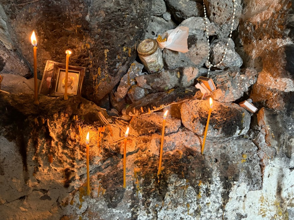 Vardzia is een site waar je wel een paar uur nodig hebt om te verdwalen in de tunnels, grotwoningen. Op zijn hoogtepunt woonden hier duizenden mensen. Bijna ondenkbaar nu! We dwaalden een paar uur rond… en genoten van een omkoopijsje uit 1 van de frigo’s die we ‘s nachts vanuit onze kampeerplek in de stad hadden zien oplichten #zonde.