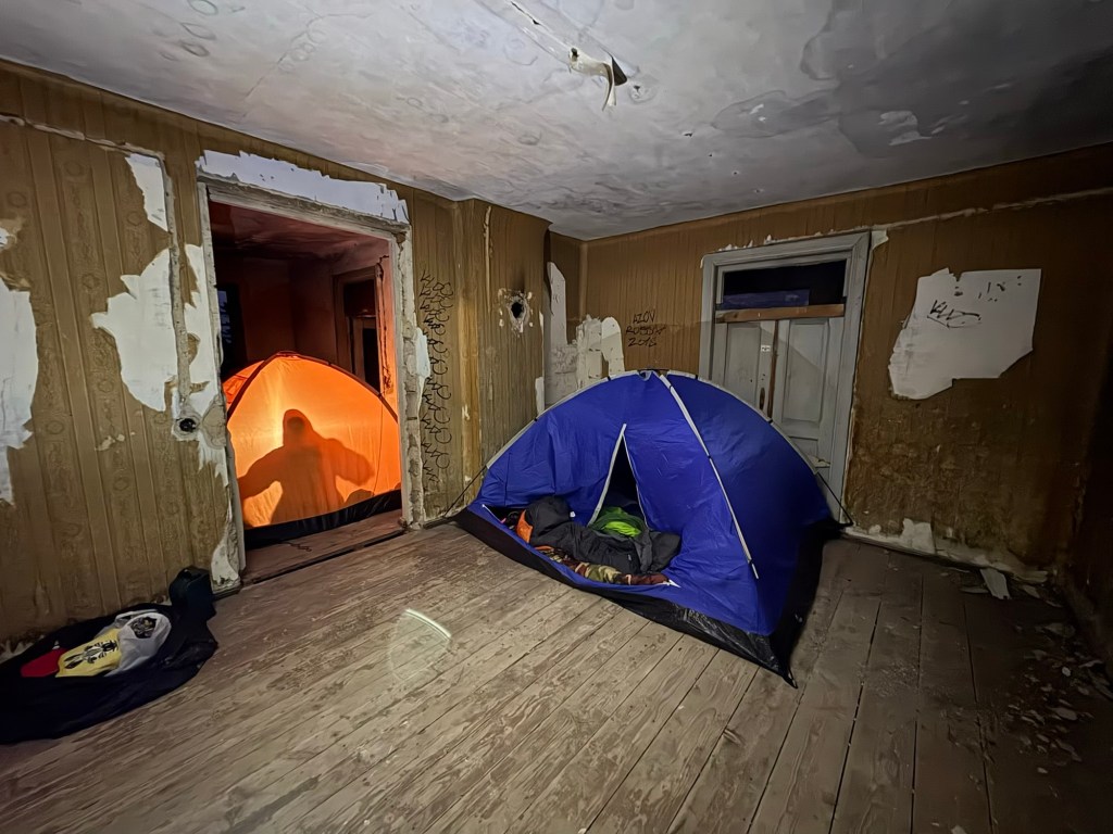 Wel, dat escaleerde snel… Het gelijkvloers had zeker al als stal dienst gedaan maar het bovenverdiep had een houten vloer en was best ok te noemen als je over de kapotte raam scherven kon kijken. We zigzagden tussen de regendruppels naar onze de auto’s, verplaatsten ze tot dicht tegen het huis en met de daktent ladder konden we starten aan ons kraakpandavontuur. #sjuutaanniemandvertellen