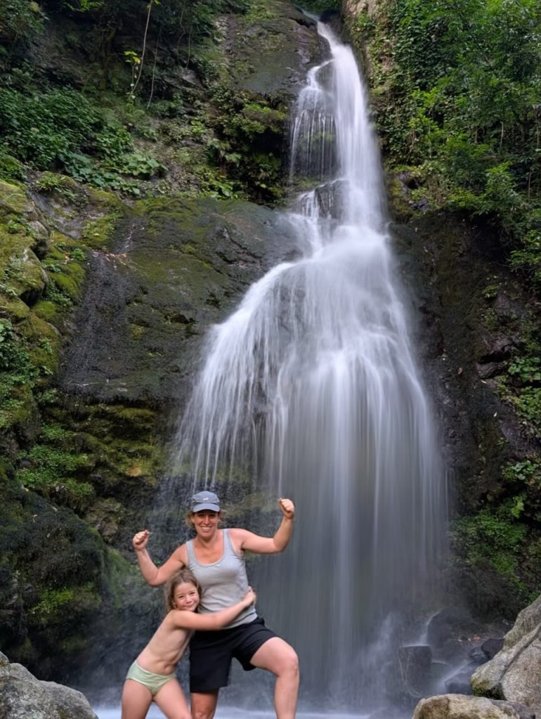 Zoals steeds nergens iets aangegeven en onze gps zei route aan de andere kant van t water waar ook een zipline parcours was. We namen tot groot jolijt van onze kids het betalende houten overzetbakje naar de andere kant van de rivier (bruggetjes doen ze hier bewust niet) en begon te wandelen wandelen wandelen tot ze daar eindelijk was…dé waterval.