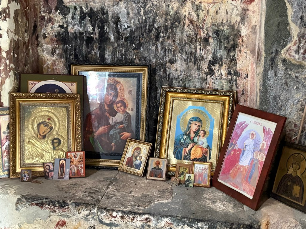We stopten meteen bij t Shemokmedi Monastery achter de hoek. Vooral de begraafplaats was indrukwekkend. Wat we leerden vandaag? Georgiërs laten graag flessen alcohol achter op t graf van dierbaren & super veel mannen staan poserend met hun auto of glas wijn op een levensgrote fotogedenksteen. Gek naar onze normen… De kerk had mooie fresco’s maar helaas weer overgeleverd aan vochtschimmels….