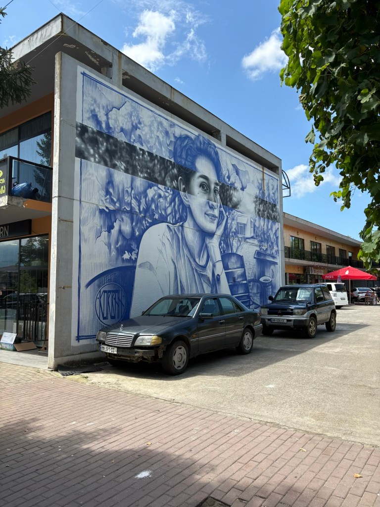 Next? Op zoek naar murals in Ozurgeti. We hadden er een paar mooie gespot de avond tevoren toen we t crazy verkeer trotseerden op zoek naar de supermarkt, dus we speurden naar deftige foto opportuniteiten (want zo uit een autoraam hangend is uiteraard niet genoeg voor onze Bauwens die zijn google local guide status 9 hoog te houden heeft 🤣)