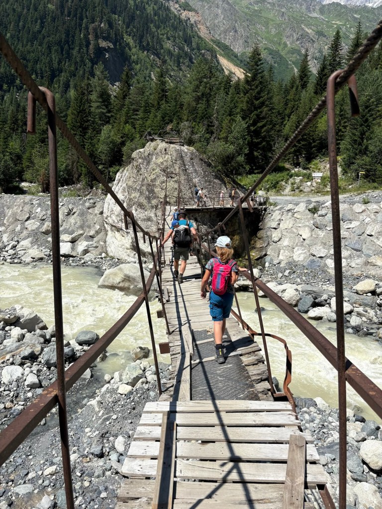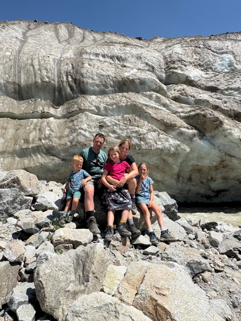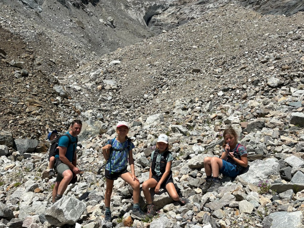 De wandeling start met een zeer bedenkelijke brug over de rivier, maar is verder een mooie hike langs het water naar de gletsjertong. Op het einde wilden we graag toch nog iets hoger en deden we een poging om tot het ijs te geraken maar uiteindelijk moest ons gezinnetje toch forfait geven. Iets met te veel gekraak en vallende stenen… ge wilt nu eenmaal geen steenlawine op uwe kop of wegzakken in zo een crevasse-spleet!