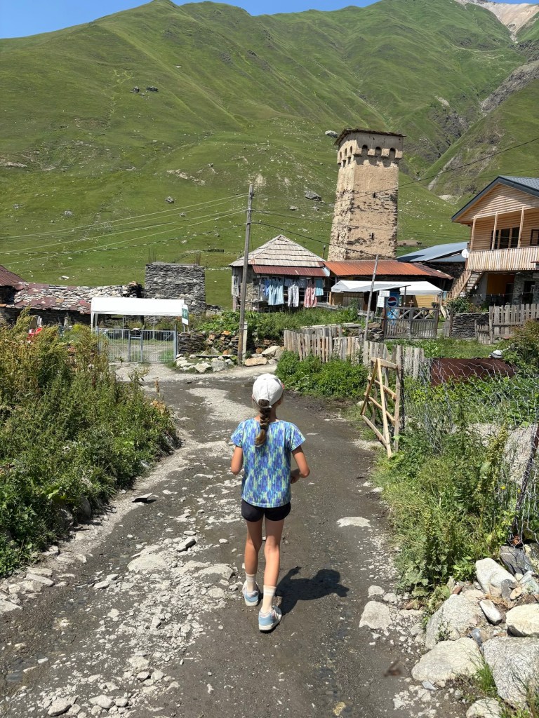 We reden terug naar Mestia en gingen opnieuw een ijsjes eten. Daarna rustig op t gemakske in onze guesthouse een babbelke, was sorteren en kids die ruim profiteerden van schermtijd op de free wifi.