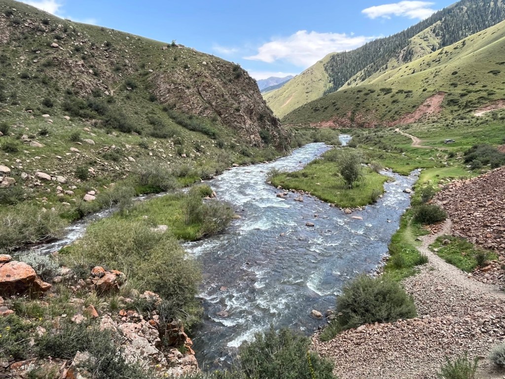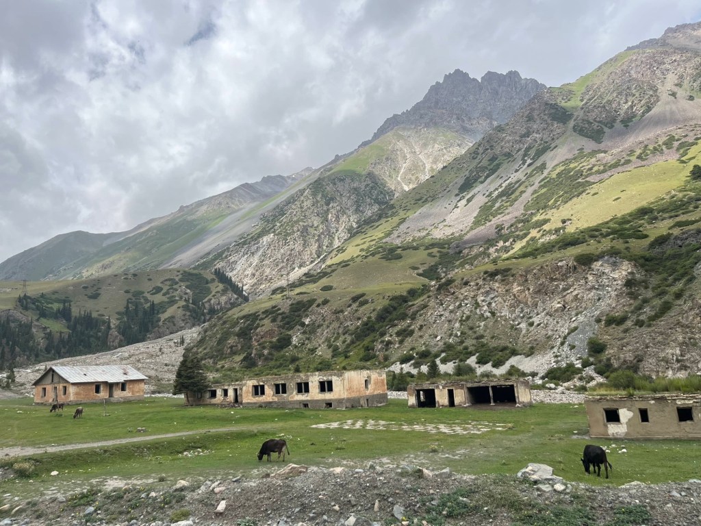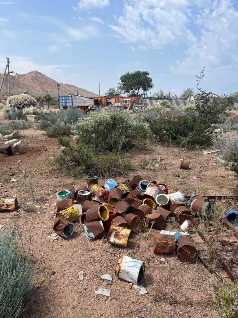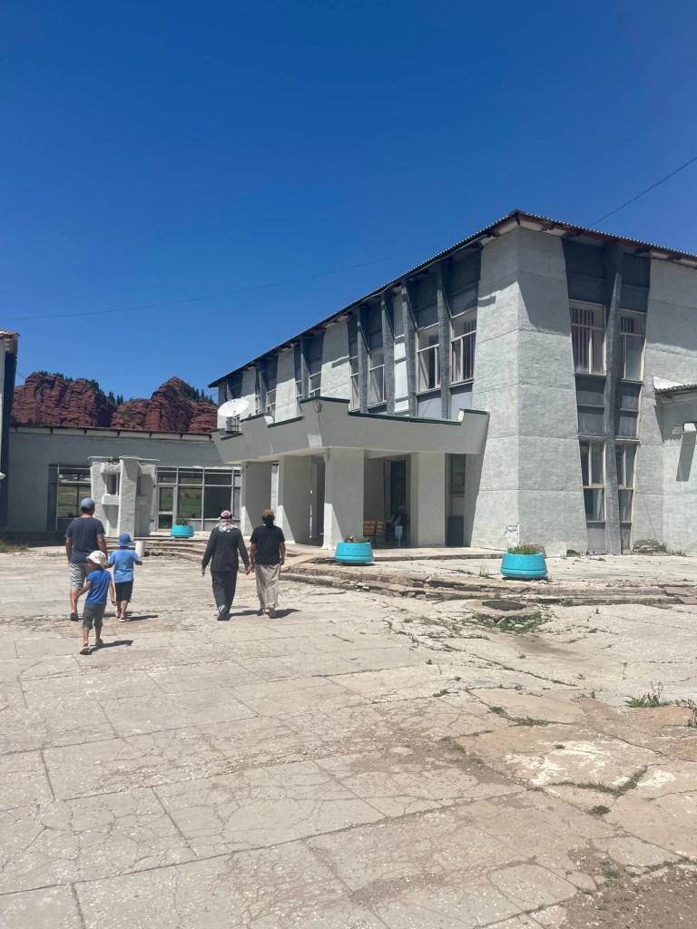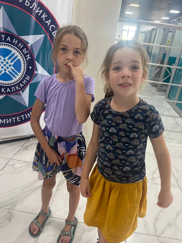 Het viel al bij al reuze mee. Een dik uurtje! Zoals de vorige keer werden auto+chauffeur weer gesplitst van alle passagiers. Ik stak dus met de kindjes over de lange brug tevoet over en kwam daar terecht in een inefficiënt systeem van rijtjes en controle. Er drong zich effe een kleine ruzie op met voorkruipers, maar vrij vlot arriveerden we ineens in niemandsland tussen Kirgizië en Kazachstan. Daarna was t verder wandelen naar de controle van Kazachstan. Daar moet je blijkbaar zelf weten dat Europese paspoorten gans links moeten aanschuiven. Gelukkig kwam een Pools meisje ons uit de foute rij halen met de melding “dat staat hier nergens aangegeven maar ge wilt dat misschien wel weten”. Hallucinant toch, hang dan toch een papiertje voor de toeristen als er maar ene is die Engels kan🤣.